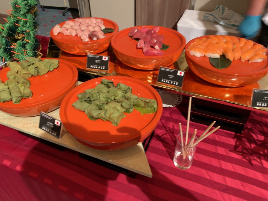 寿司(鮪、サーモン、はまち)、柿の葉寿司