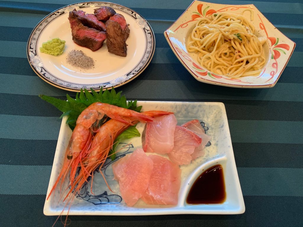 こんな感じでステーキ、お造り、カニ、お寿司を中心にガンガン頂きました!