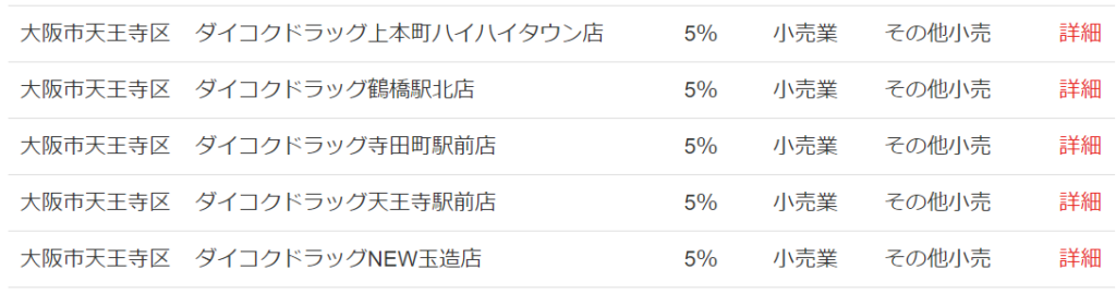 ただ何が中小店舗になるかはよく分かりません。僕のイメージは商店街にあるような個人経営の店でしたが、ドラッグストアのダイコクドラッグはたくさん店舗を見かけますが5%還元になっていますし、かごの屋も関東から関西まで店舗がありますが5%還元となっています。