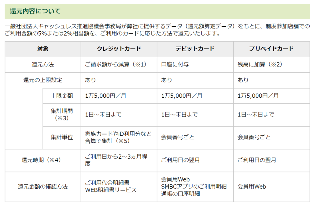 還元上限:15000円分/月(つまり5%還元の場合30万円/月の支払い)