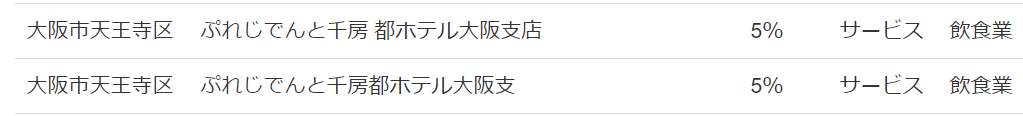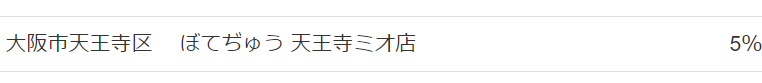 大阪でよく見かける「ぼてぢゅう」「千房」「じゃんぼ総本舗」といったコナモノのチェーンも5%還元です。
