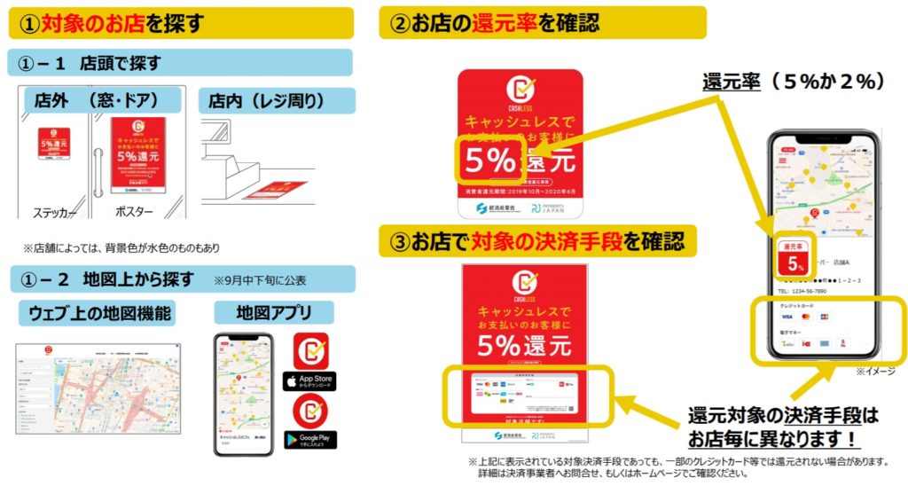 キャッシュレス・消費者還元事業のポイント還元制度の対象となるお店を調べるには?