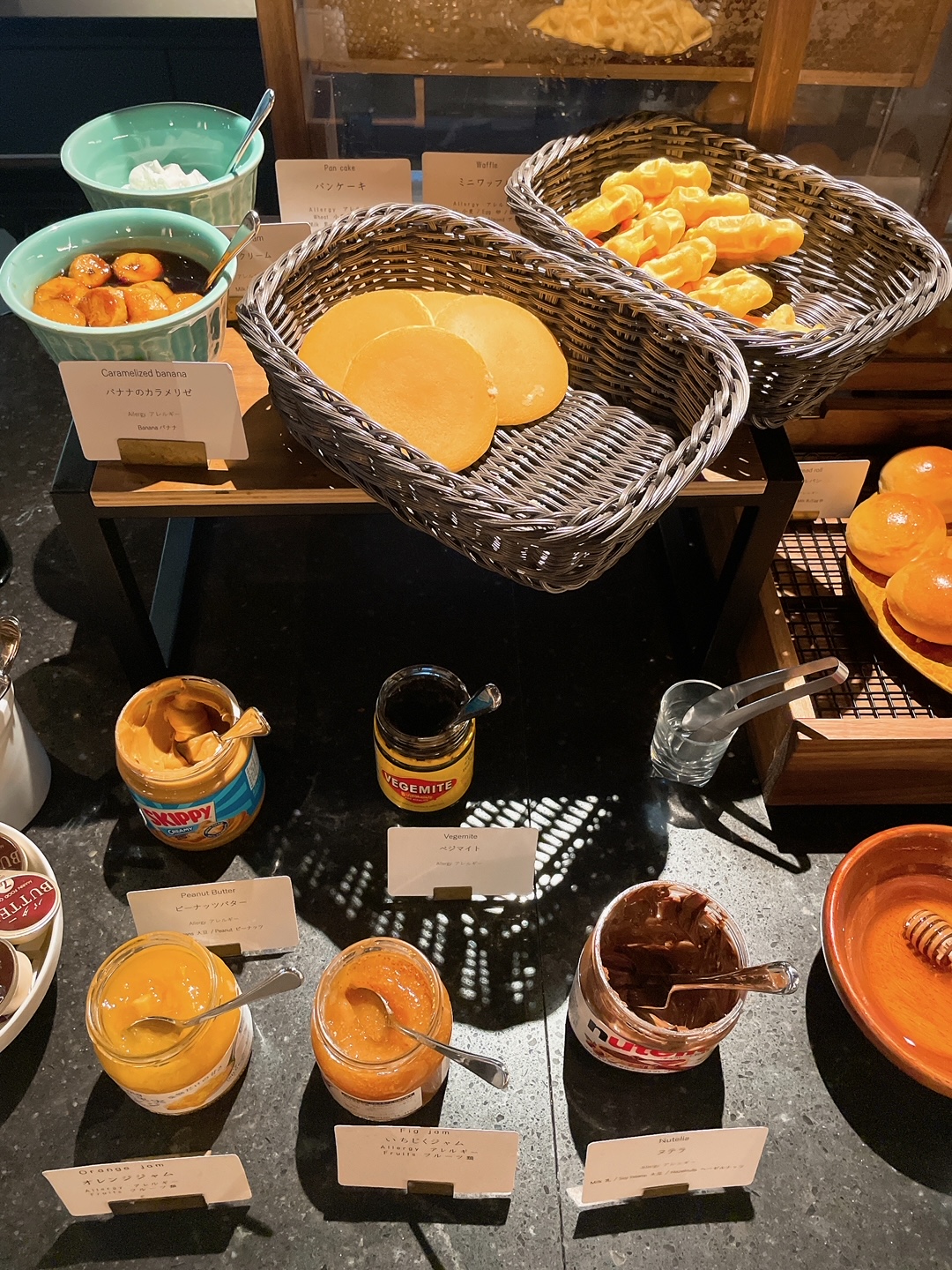 ピーナッツバター、ベジマイト、ヌテラ、いちじくジャム、オレンジジャム
