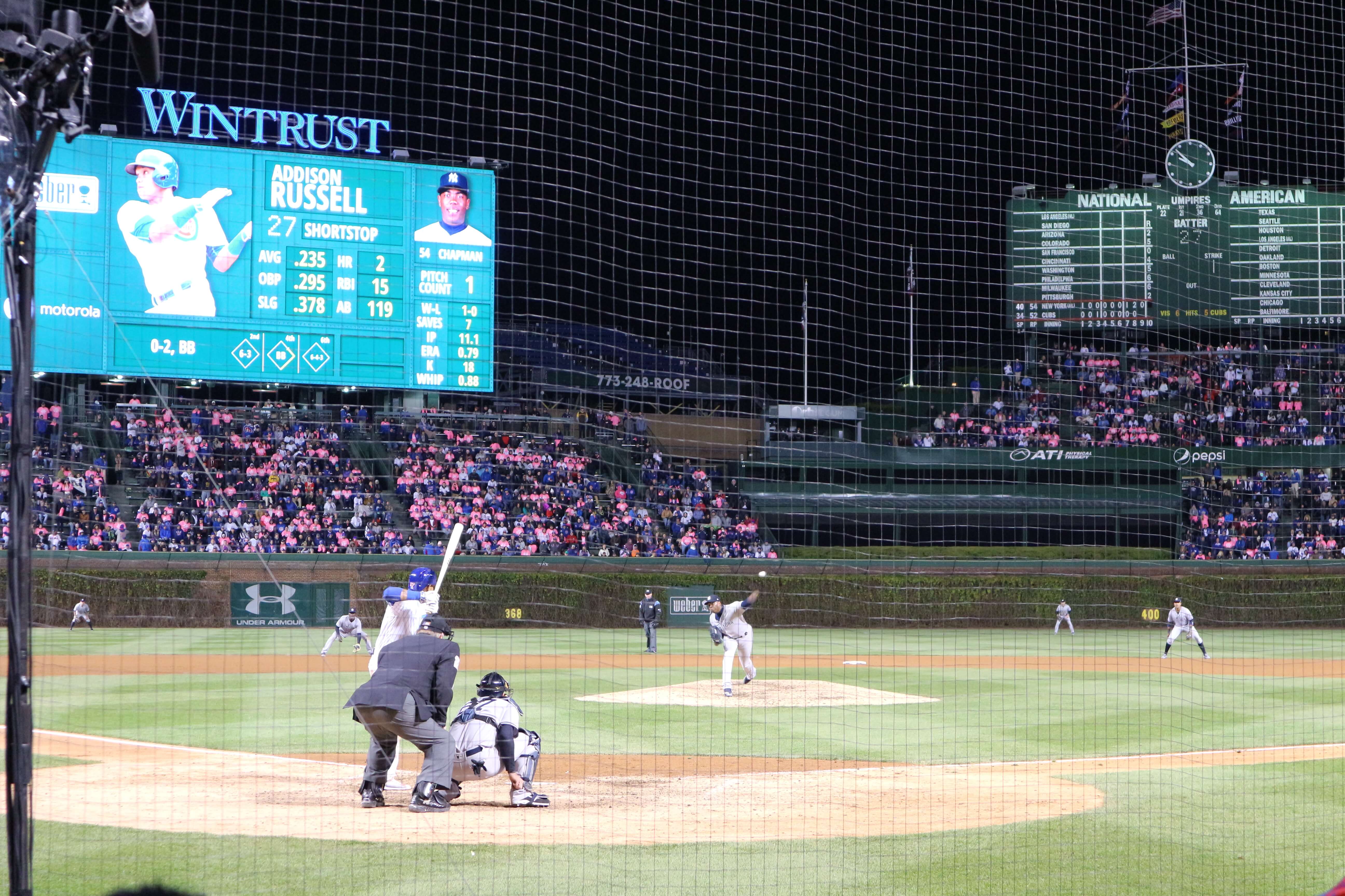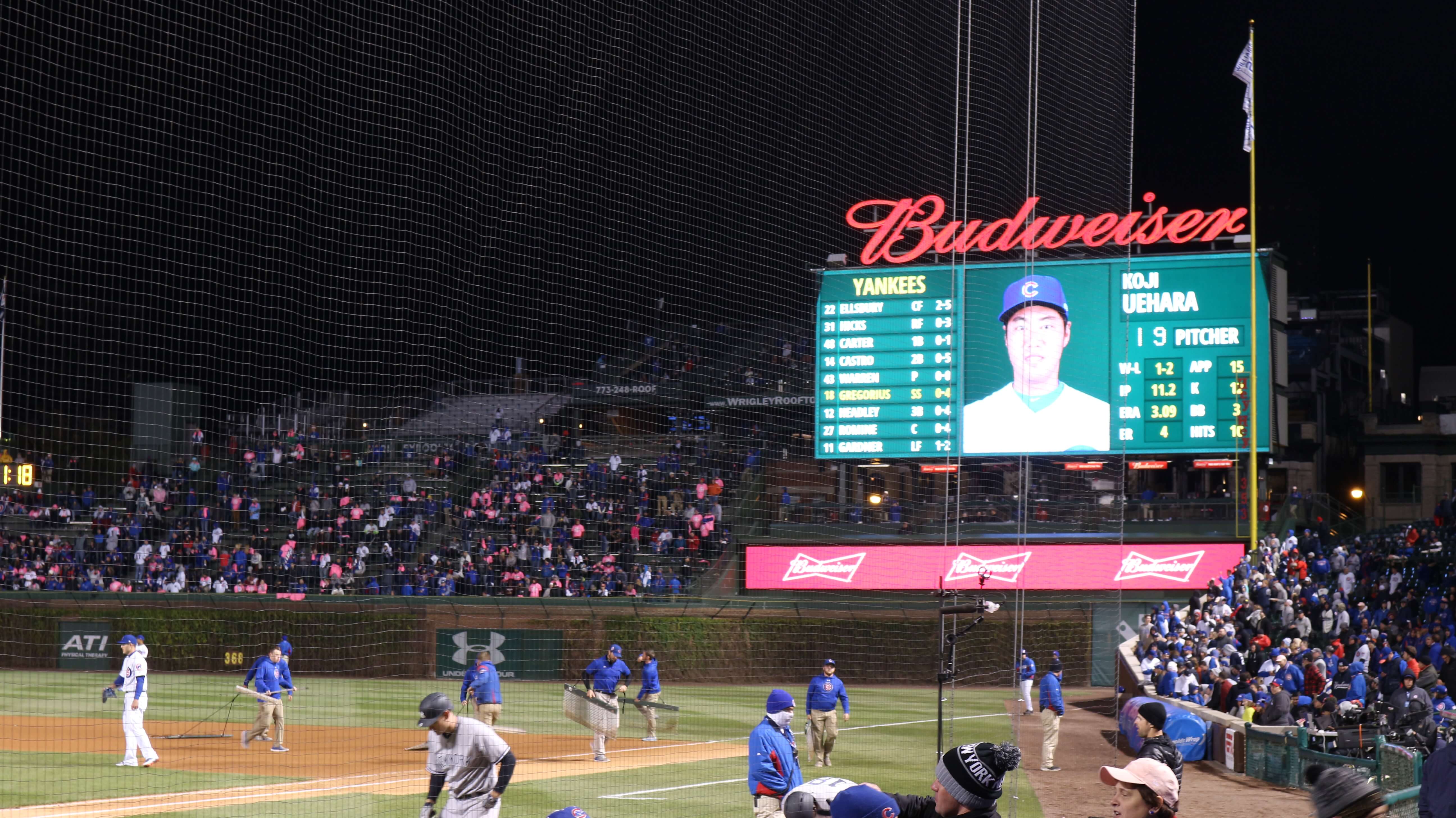 試合は大熱戦!9回にCubsがYankeesのクローザーChapmanから3点を取って延長へ!