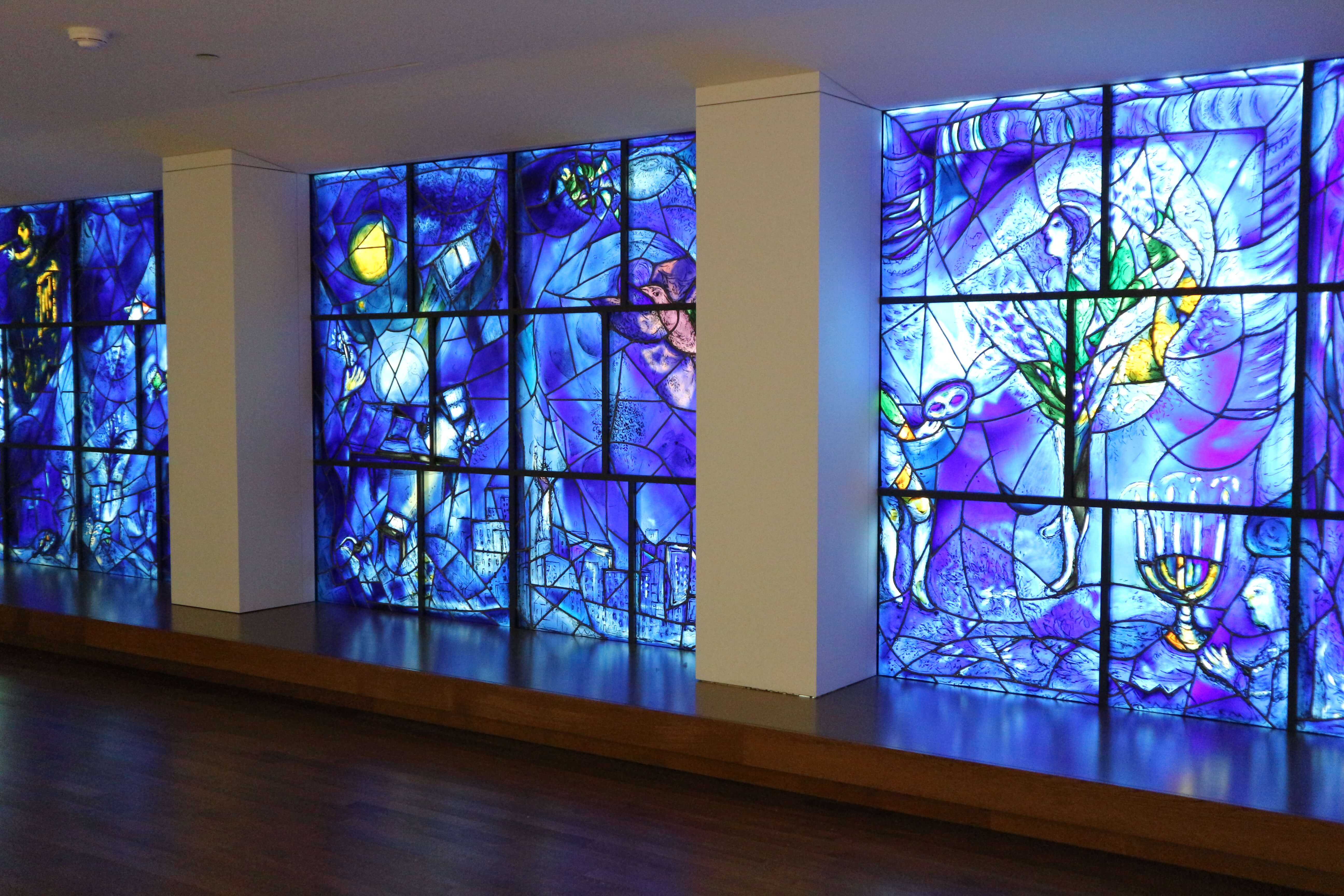 今度は1階に降ります。シャガールが元の絵を描いたステンドグラス作品である「アメリカン・ウィンドウズ」は全部で3面から構成され幻想的で青が印象的です。