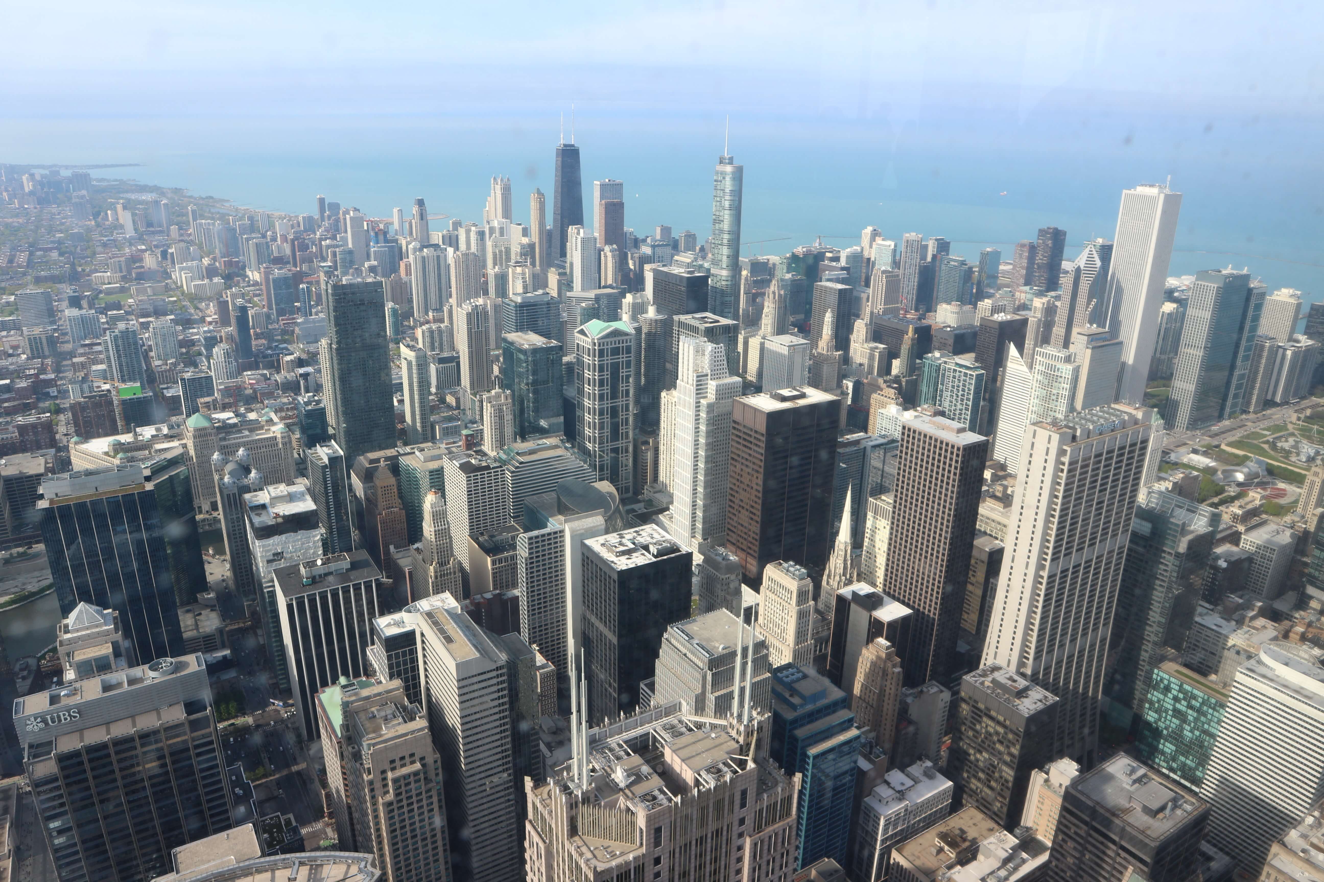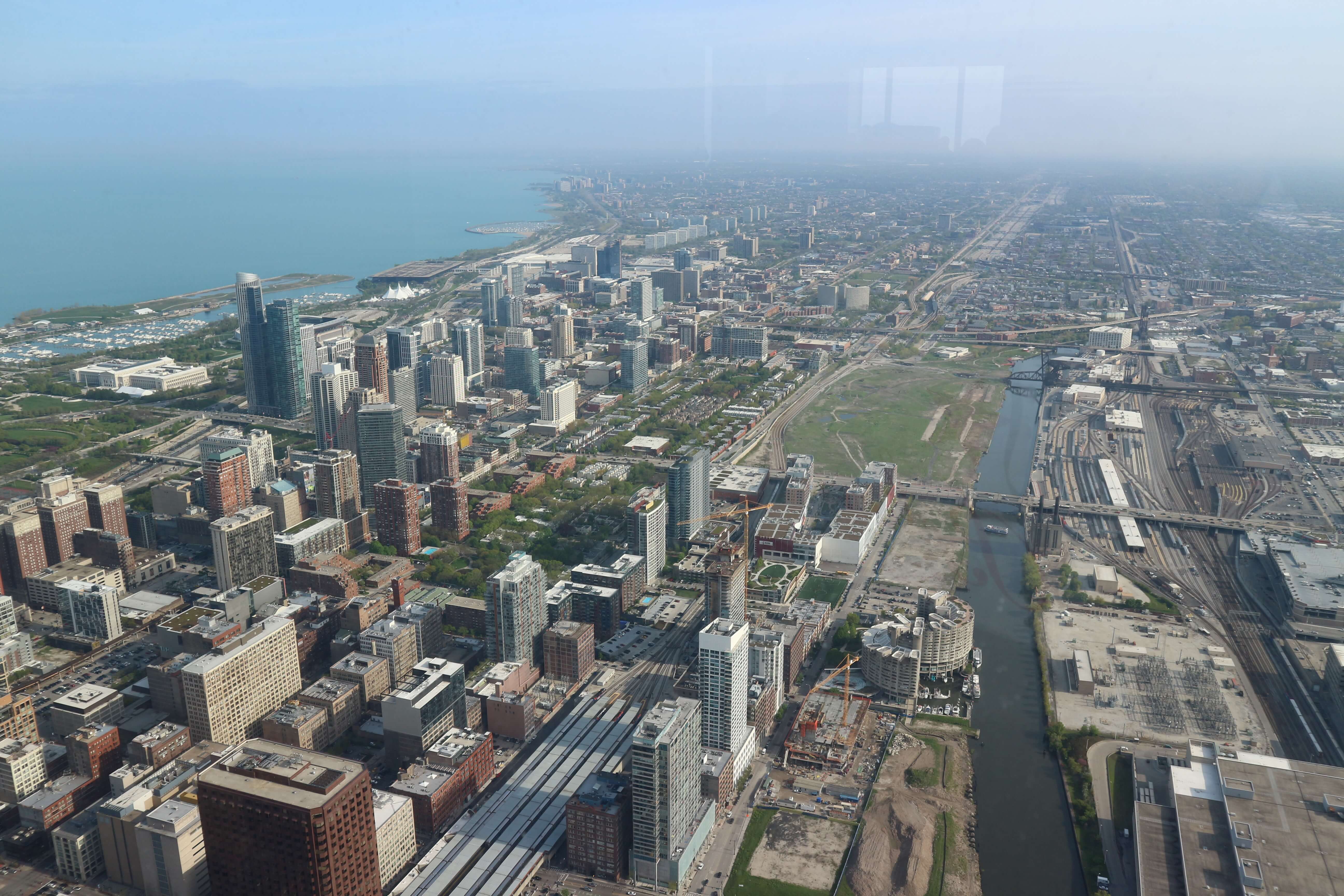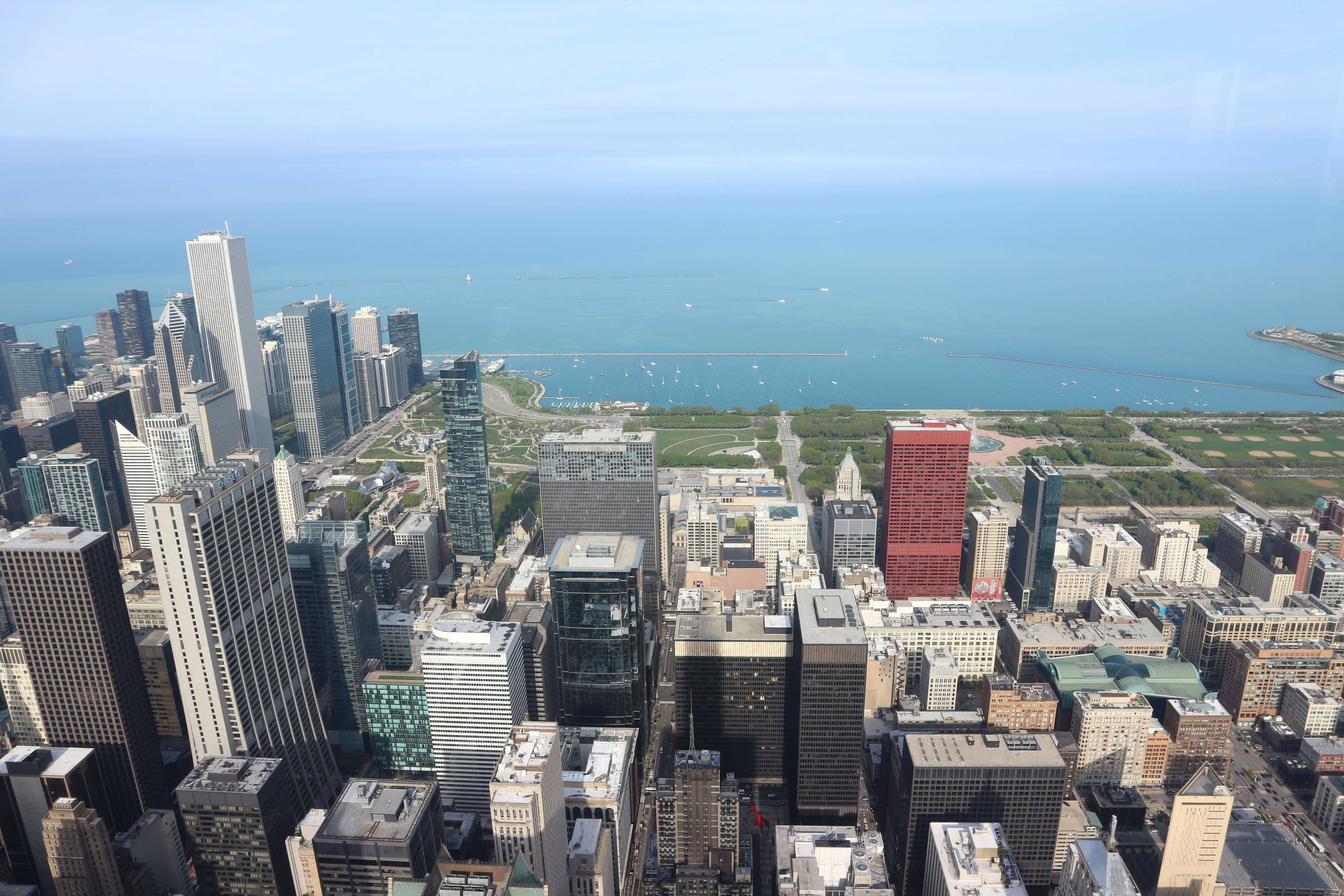 北側はリバーノース地区やマグニフィセントマイルといったシカゴの中心を見ることができシカゴらしい高層ビルがニョキニョキと立ち並んでいます。午前に行ったジョンハンコックセンターも見下ろせますね!