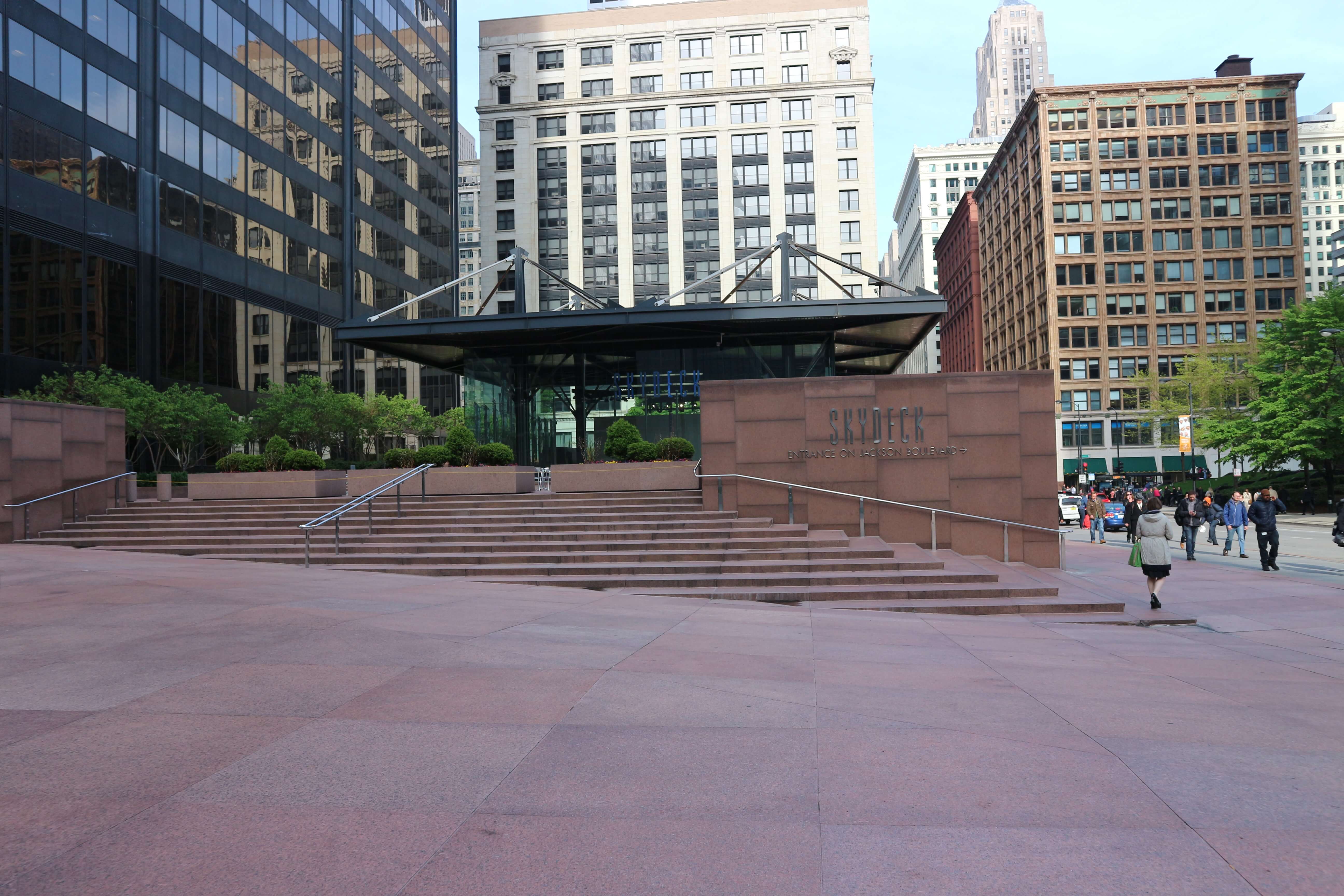 ウィリス・タワーはシカゴで最も高いビルです。以前シカゴを訪れた時は「シアーズタワー」という名前だったのですが、イギリス系保険関連企業のウィリス・グループ・ホールディングスが命名権を取得し、2009年7月に名称が変更となったとのことです。誕生以来約25年間は世界一の高さを誇るビルとして君臨していましたが現在は世界で14番目、アメリカで2番目に高いビルとなっています。110階建て(443m)でビルの屋上から突き出たアンテナの高さを含めると約520mにも達します。
