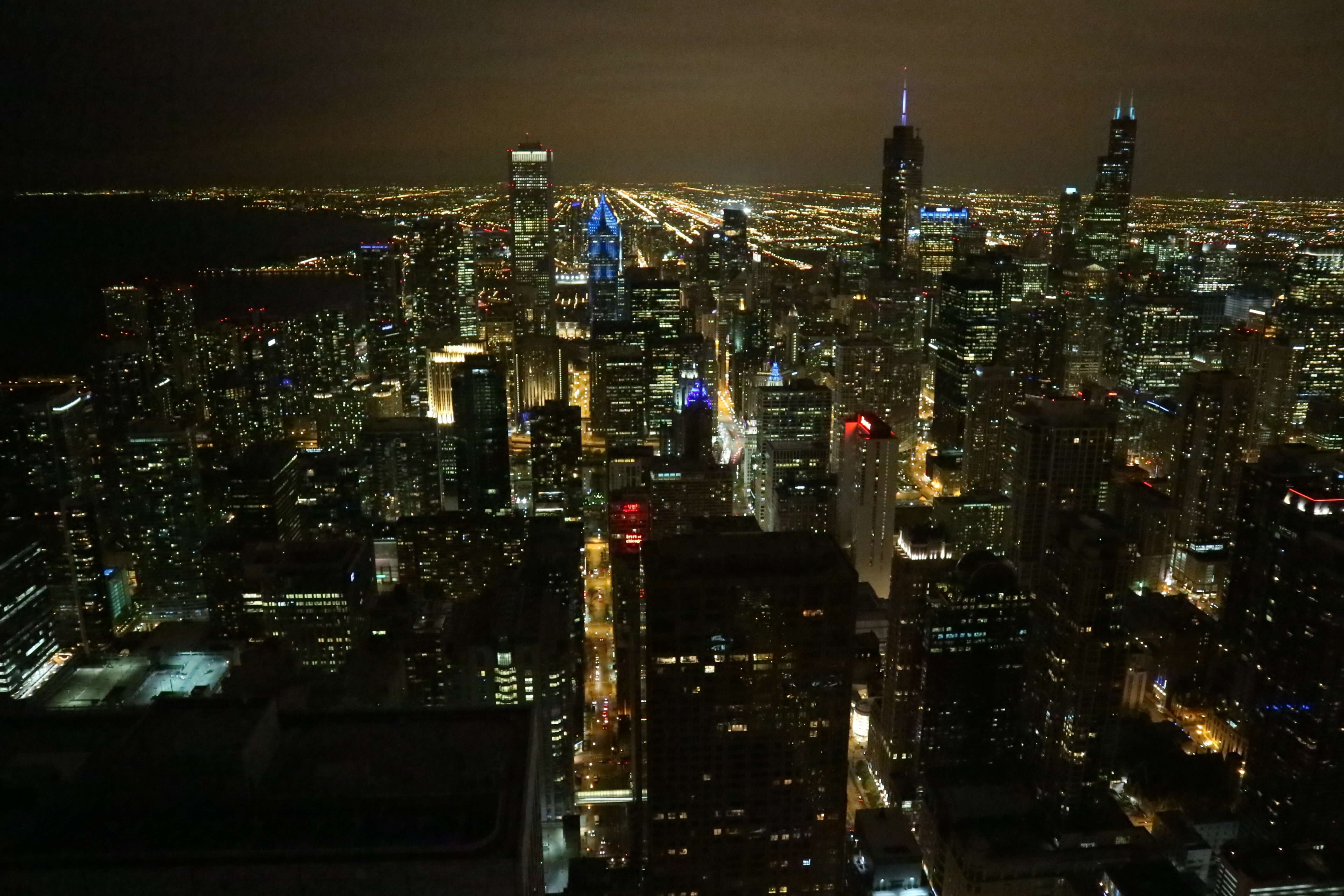 南側の夜景です!トランプタワーやウィリスタワーなど高層ビルが立ち並びシカゴらしい夜景です。
