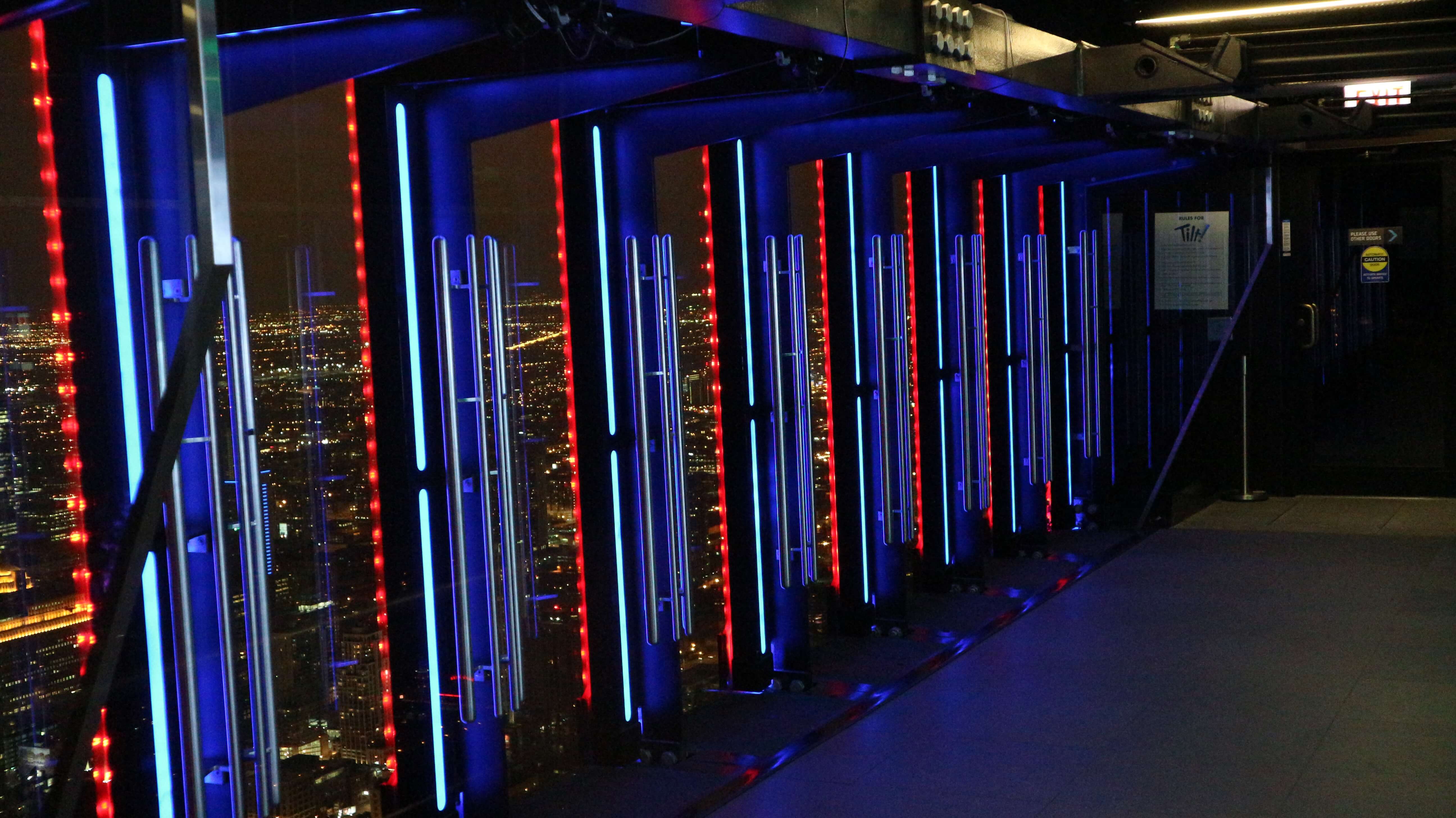 展望台にある「ザ・レッジ(The Ledge)」という、ビルから突き出した全面ガラス張りのバルコニーが何といっても有名です。透明な床の真下にはシカゴの高層ビル群でさえ見下ろすことができてスリル満点の場所です。