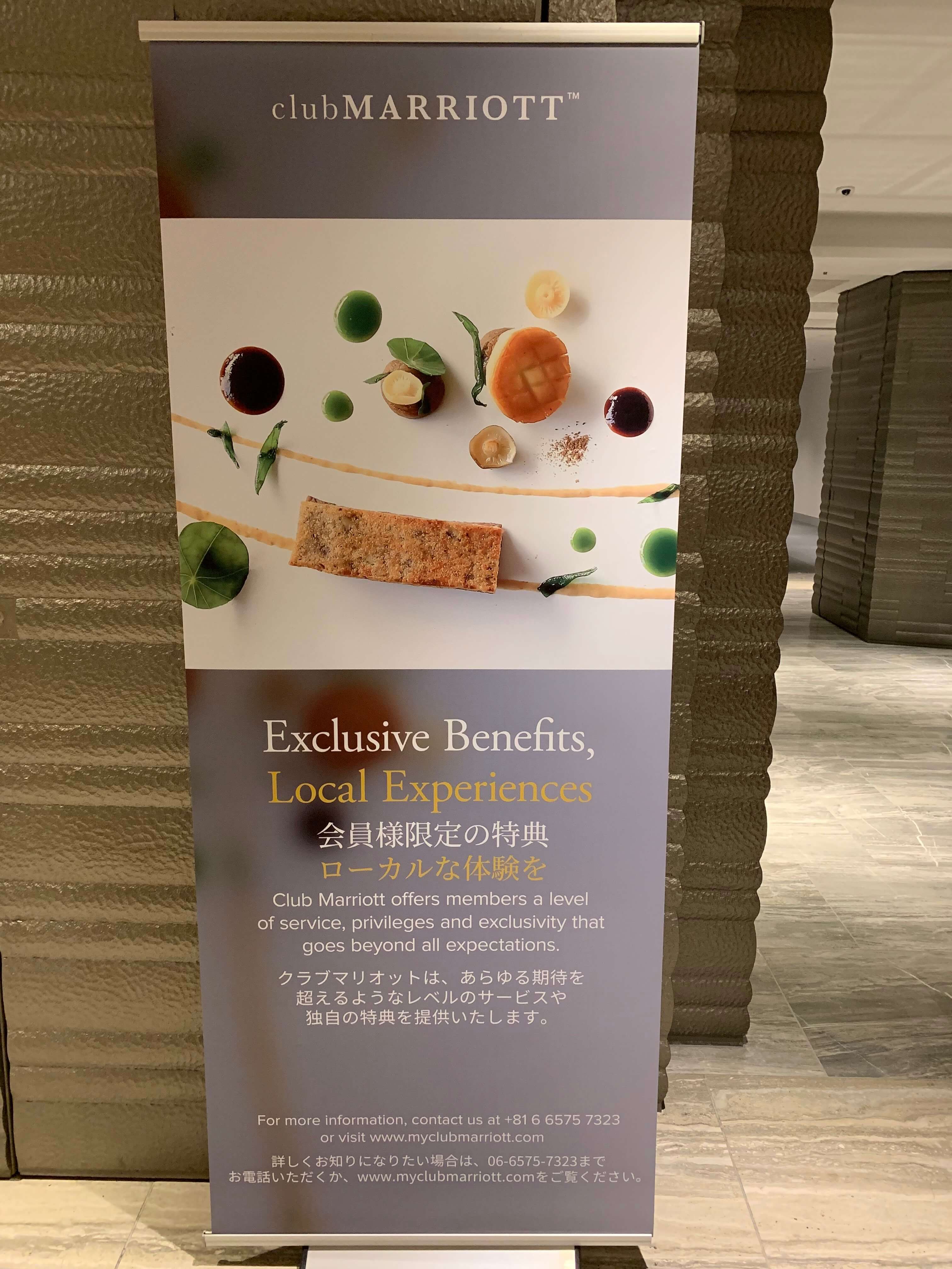 最近琵琶湖マリオットホテルの1階ロビーやレストランがある12階エレベーターホールに以下の画像のようなクラブマリオットの看板を見かけるようになりました