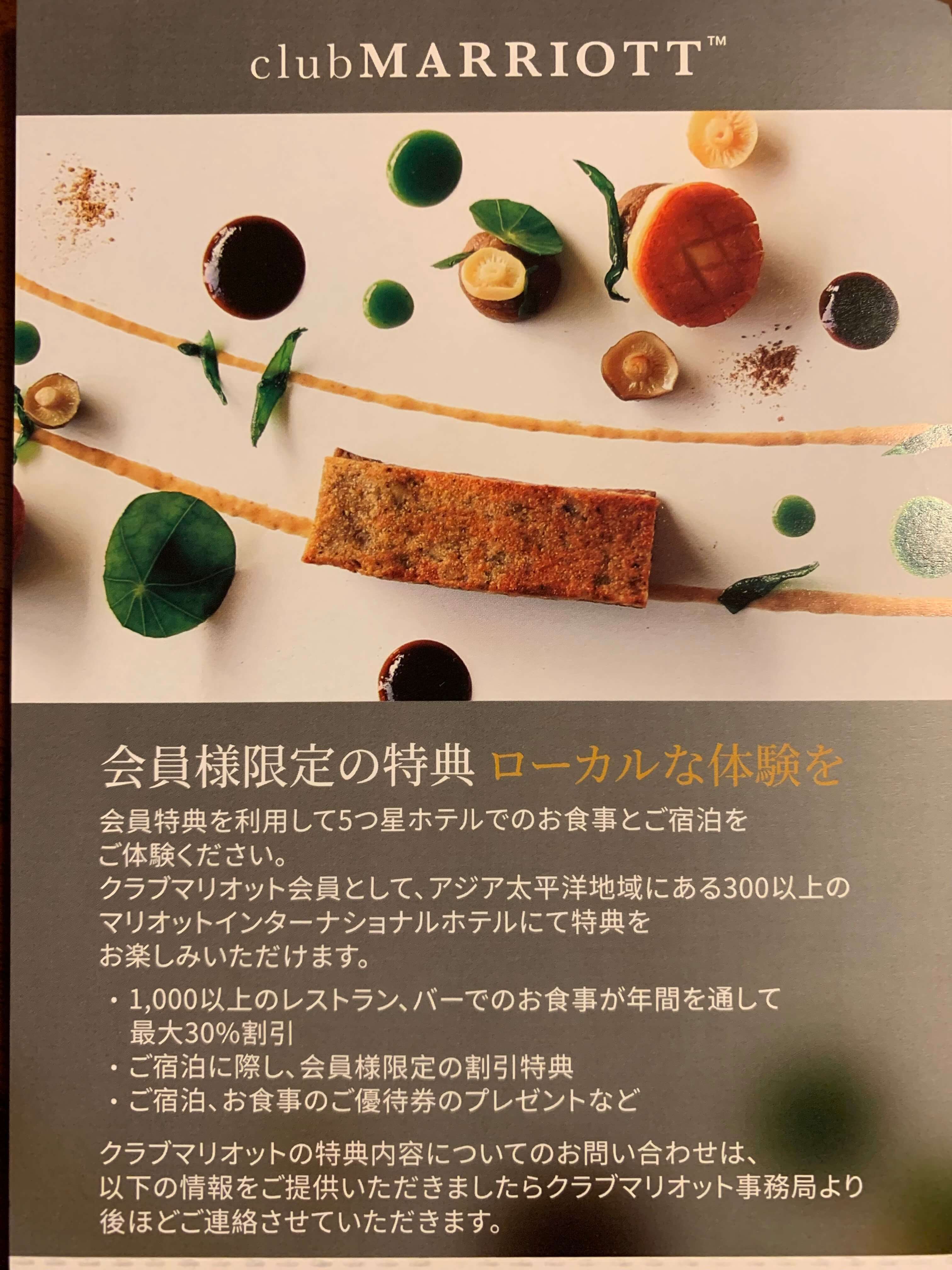 クラブマリオットは料飲特化の会員プログラムという表記がされています。もちろん割引はレストランでの飲食がメインなのですが、宿泊でも割引されます。