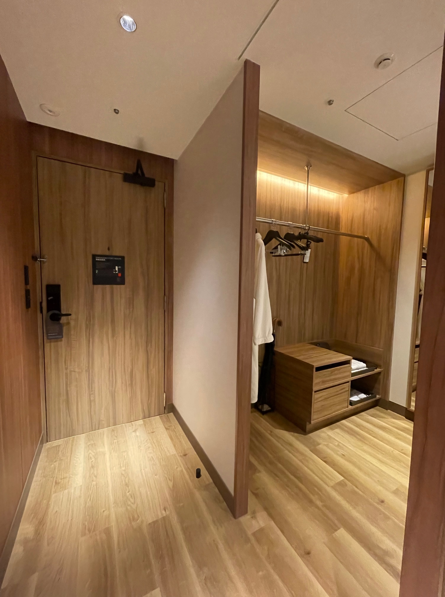 ベッドルームに入ると右側はベッドルーム、左側はウェットエリアとなっています
