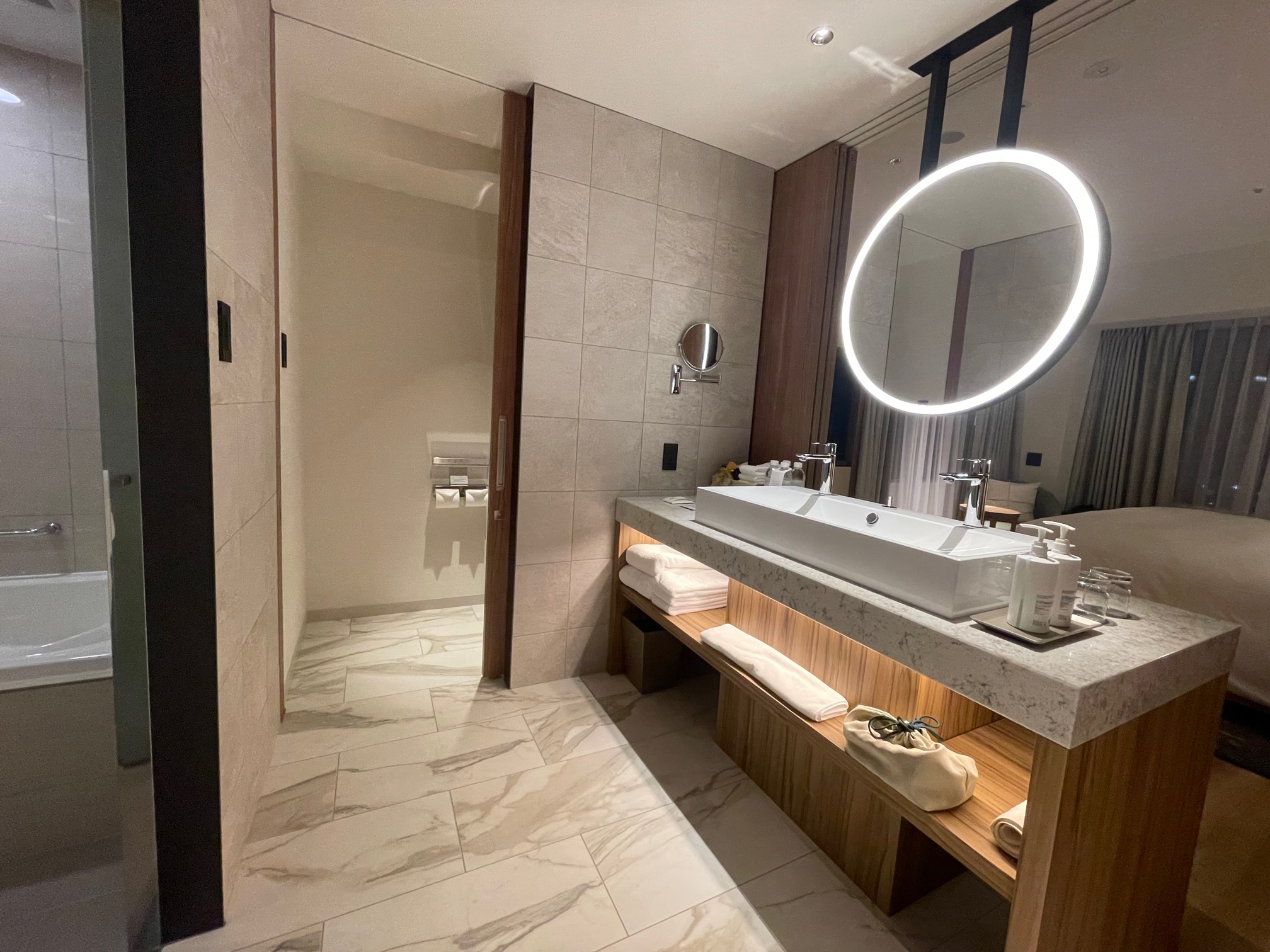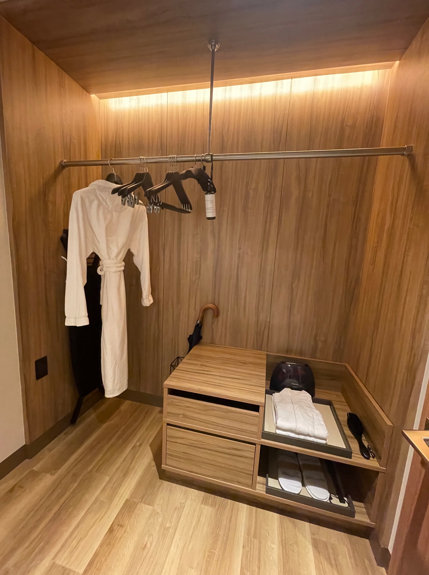 ベッドルームは快適でしたし浴室もゆったりとしていて、クローゼットはウォークスルーで回遊でき広く感じましたし、有償でも金曜日で5万円以下ですし個人的にはコスパの良いスイートルームだと思いました