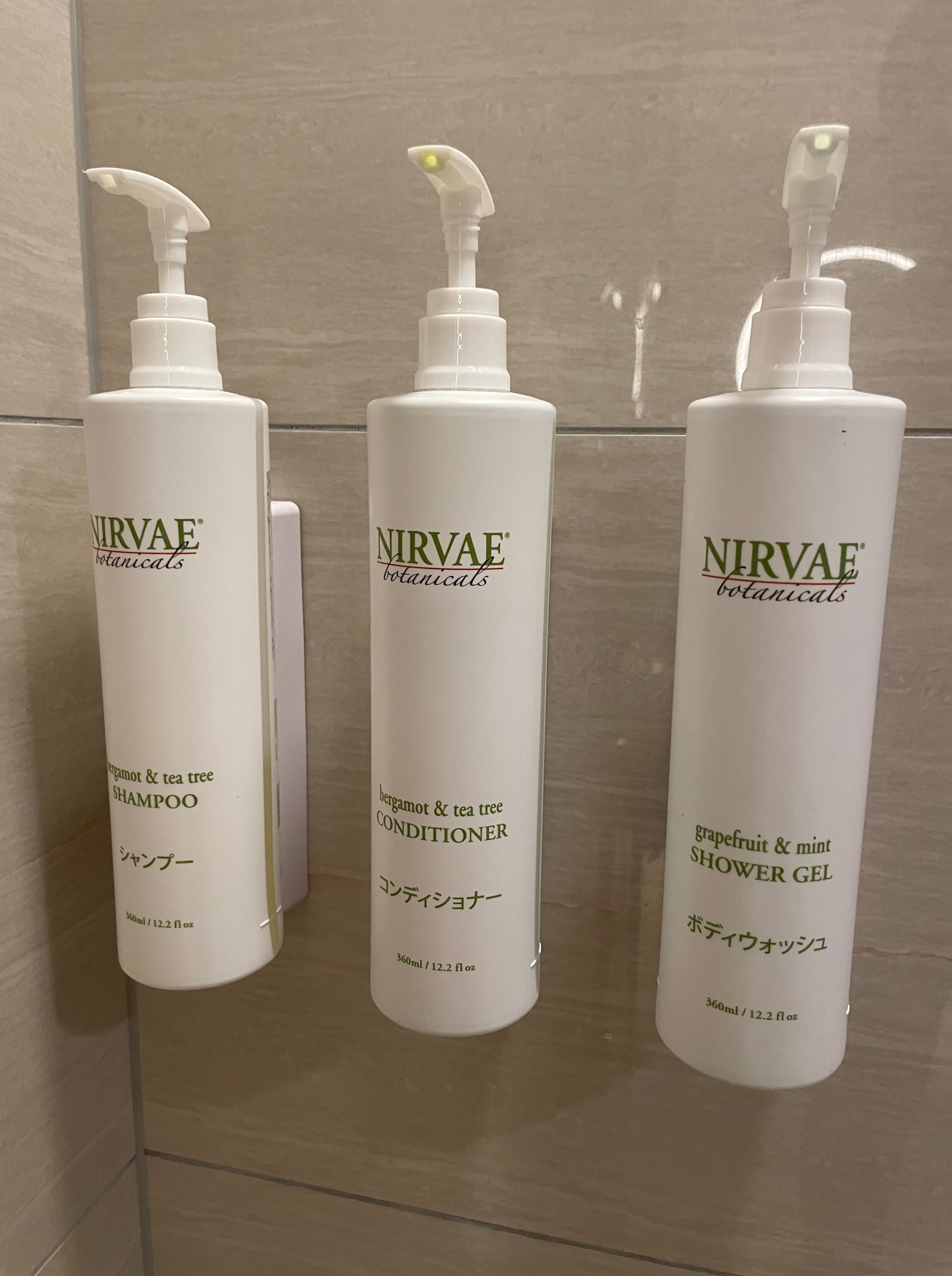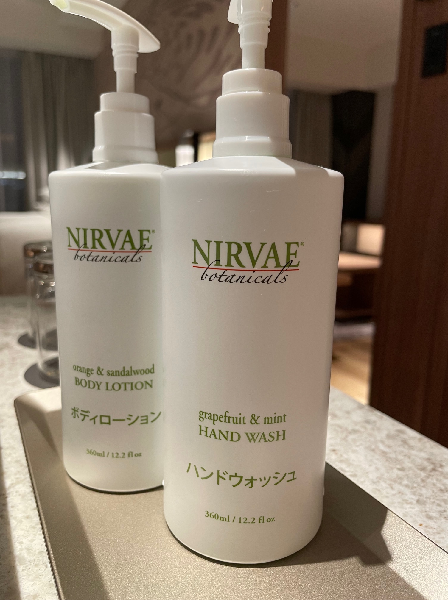 ハンドウォッシュやボディローションもバスルームと同じくNIRVAEのボトルタイプ