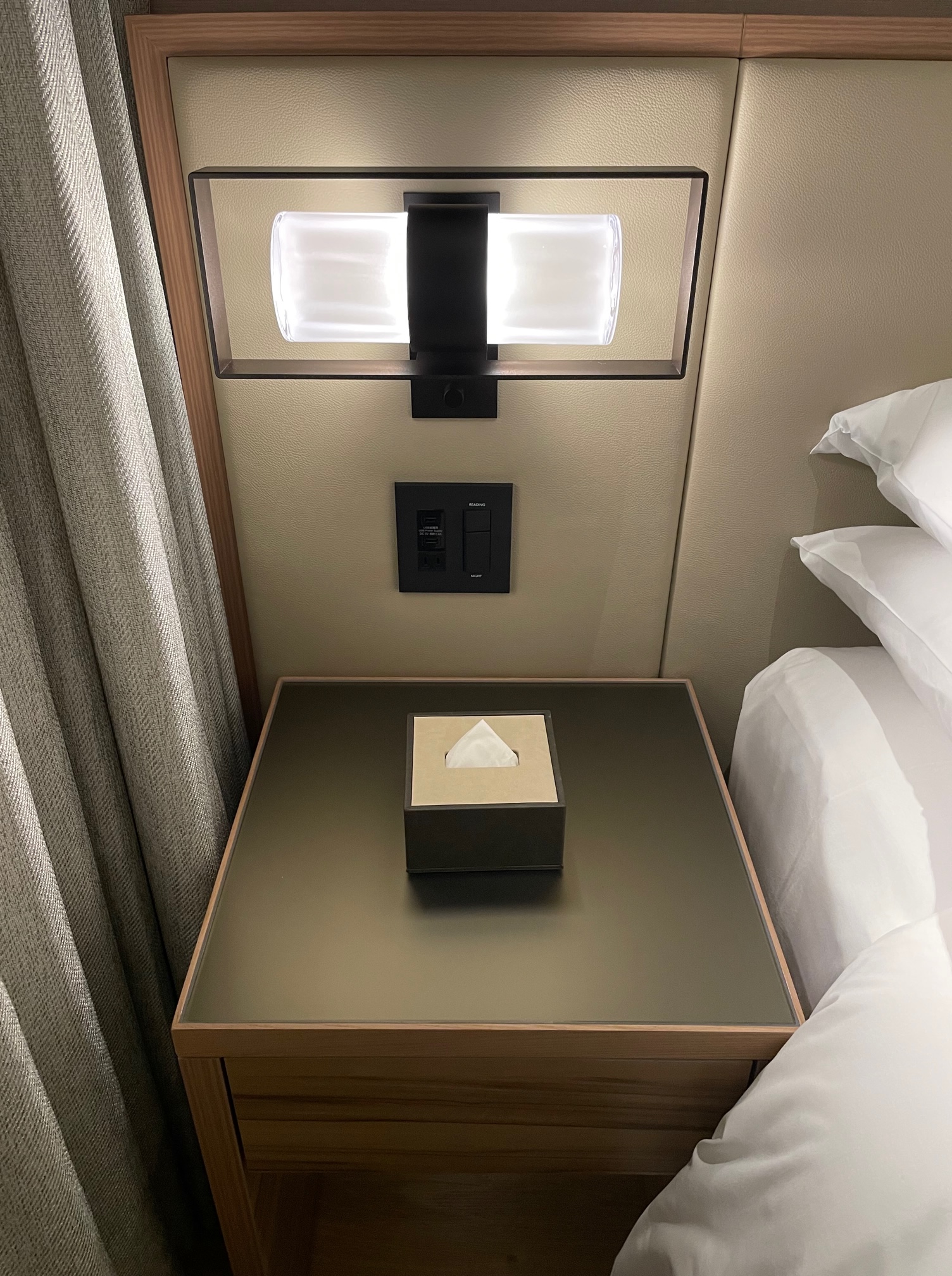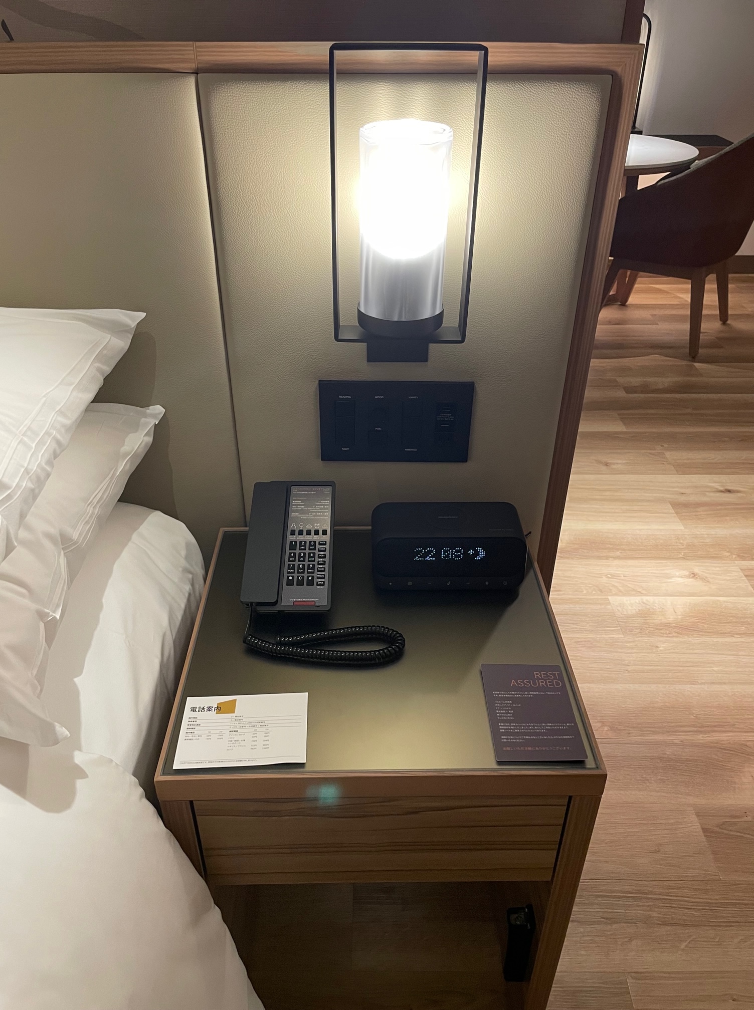 反対側のベッド左側のベッドサイドテーブルを見てみましょう