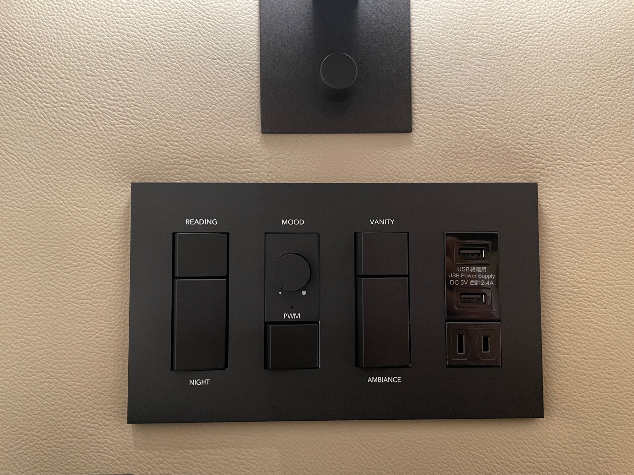 照明のスイッチにコンセント1口、USBコンセント2口