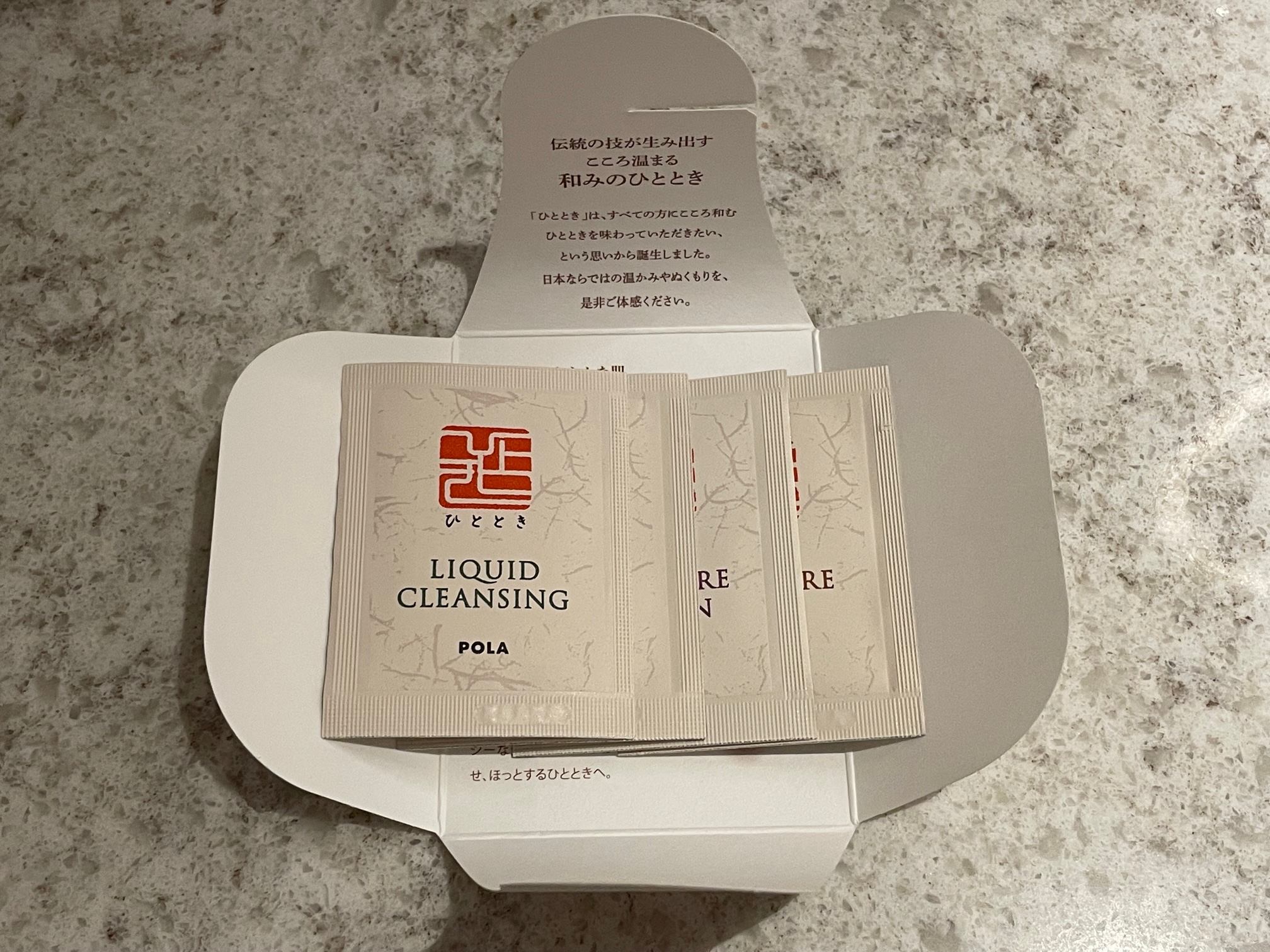 その他バスソルトとPOLAのひとときというブランドのスキンケアセットが置かれていました