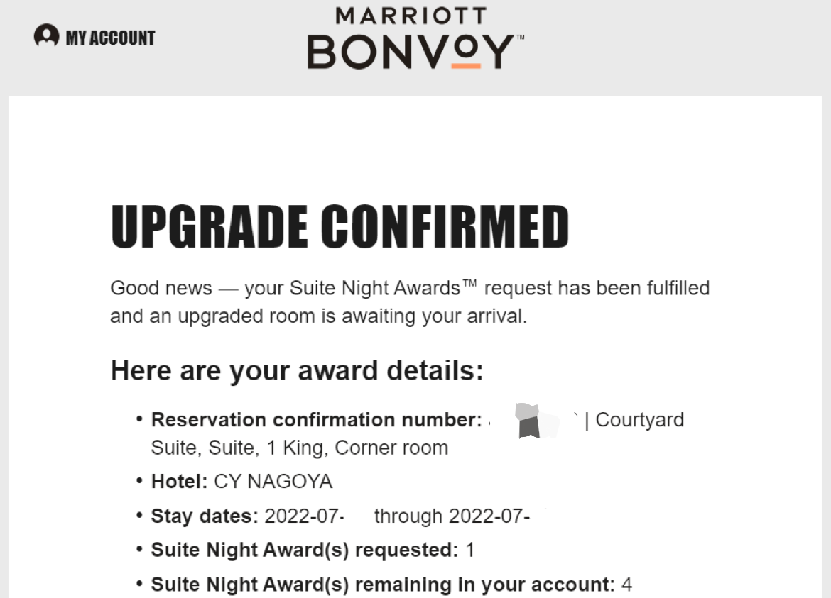 今回は最安デラックスルームの予約でしたがスイートナイトアワードが適用されコートヤードスイートにアップグレードされました!