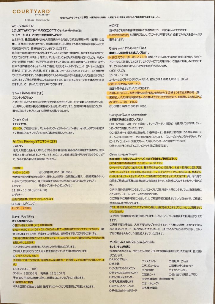コートヤード・バイ・マリオット大阪本町緊急事態宣言中のサービスは?