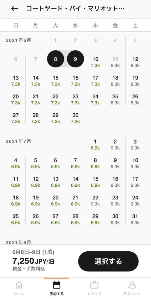 そして、2021年6月~7月は平日は6,000~7,000円台、週末は8,000~9,000円台とかなりお得に宿泊できます。