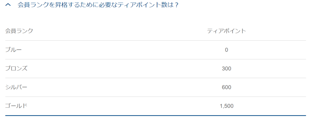 本来上級会員資格を得るために必要なティアポイントは以下の通りです。