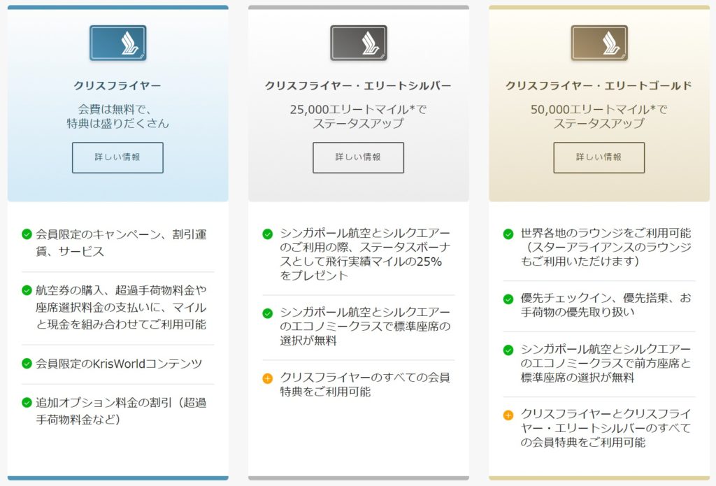 シンガポール航空クリスフライヤー上級会員資格を得るために必要なエリートマイルは以下の通りです。