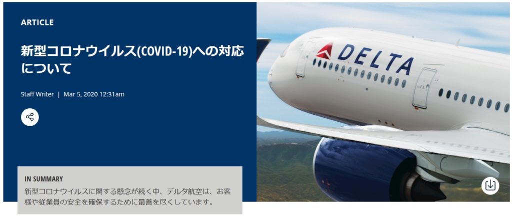 デルタ航空は新型コロナウイルス感染拡大に伴う上級会員に対する対応を以下のように発表しています