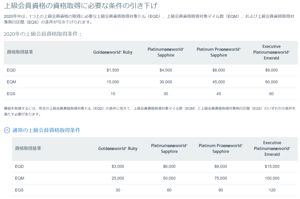 2020年から上級会員資格の資格取得に必要な条件が変更となったところでしたが、早速条件が変わってしまいました…