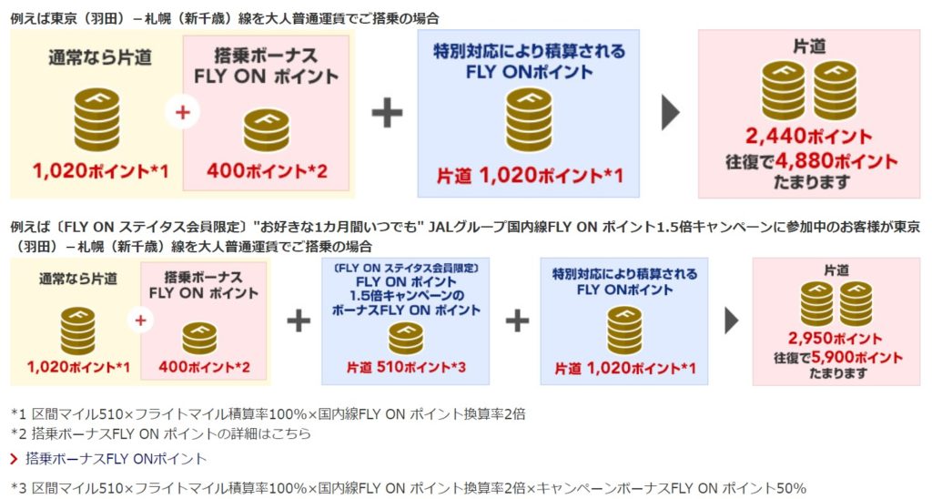 2020年4月1日積算分以降→通常のFLY ON ポイントと同時に積算