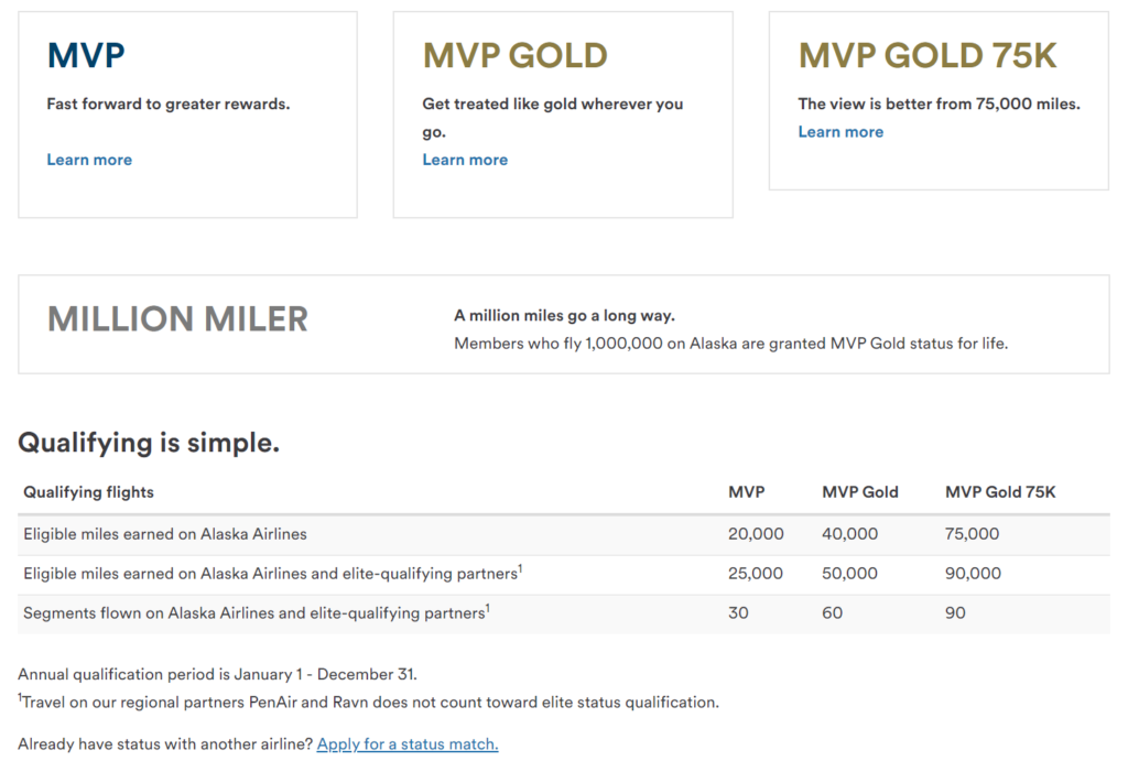 ちなみにアラスカ航空のステータス獲得には以下の基準が必要となります