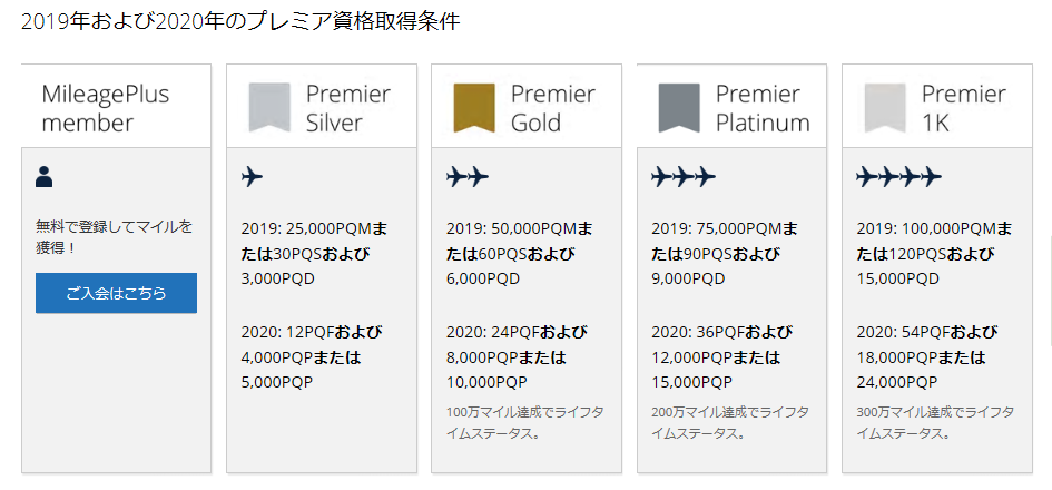 コロナ対応以前の2019年および2020年の上級会員資格の資格取得に必要な条件は以下の通りでした