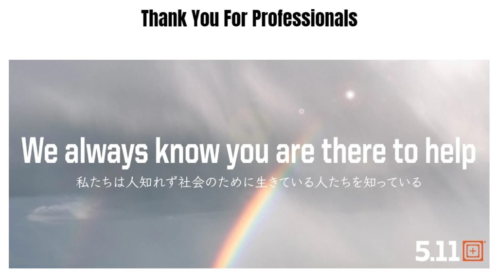 アメリカ発祥のアウトドアグッズブランド5.11Tacticalでは医療従事者は職務を証明できる身分証明書を提示すれば特別割引を受けることができます。割引率は店頭にて発表となります。