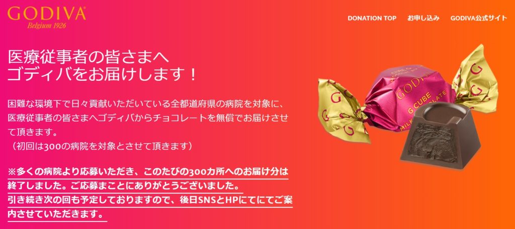 ゴディバが医療機関にチョコレートを無償提供