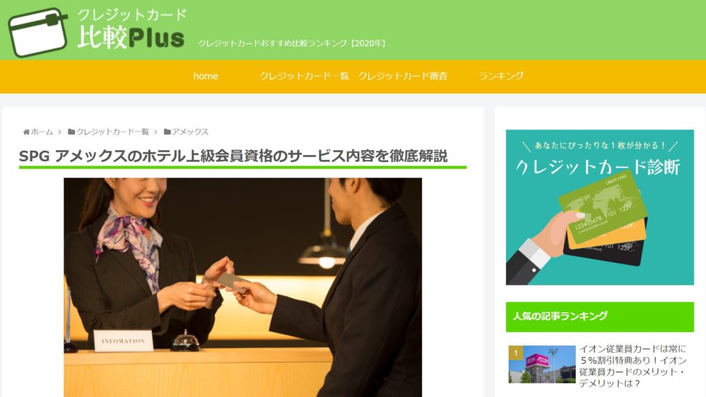 私事で恐縮ですが今回ご依頼いただきましたので「SPG アメックスのホテル上級会員資格のサービス内容を徹底解説」という記事を「クレジットカード比較Plus」様に寄稿し、掲載して頂きましたのでご報告させて頂きます