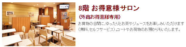 などのお得意様サロンはドリンクサービスや休憩スペースもあるようです。