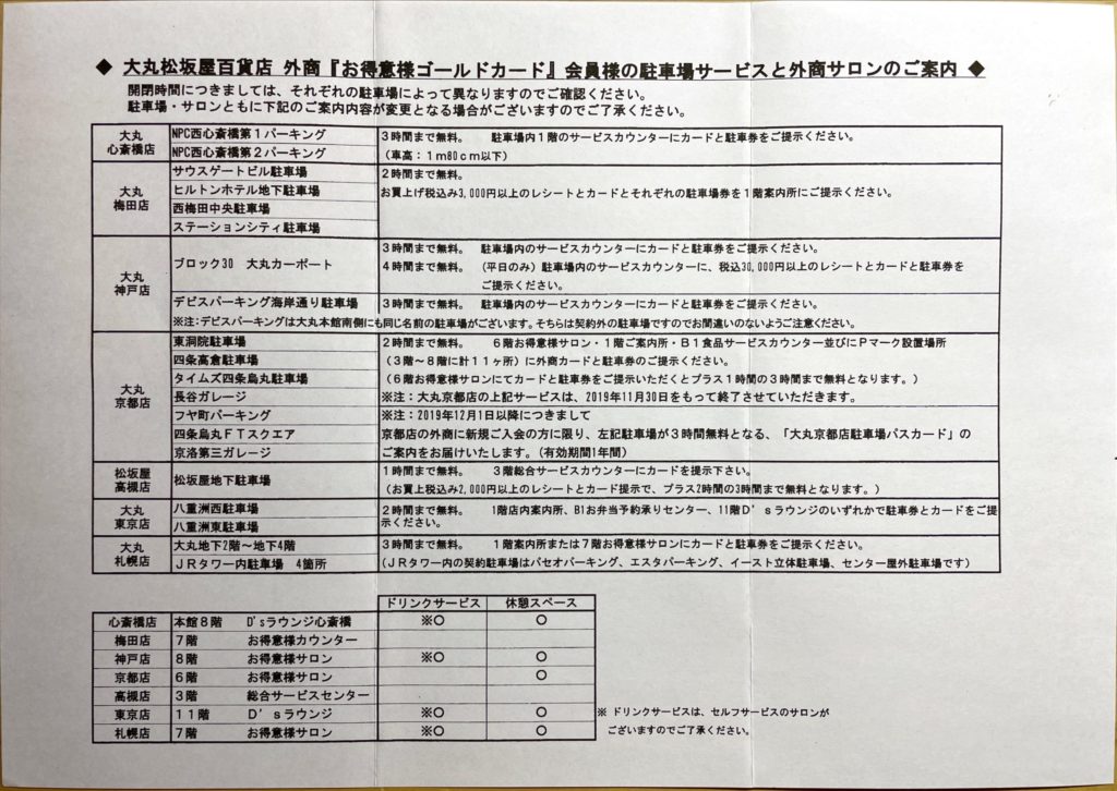 2019年で廃止(ただし、京都店外商に新規入会の方に限り駐車場が3時間無料となる「大丸京都店駐車場パスカード(有効期間1年間)の案内が届きます)