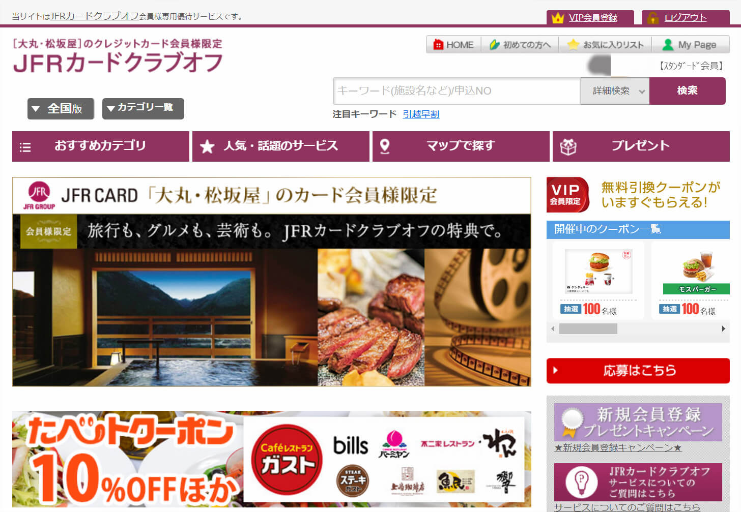 「JFRカードクラブオフ」サービスを利用できます。要登録ですが登録料や会費は無料です。