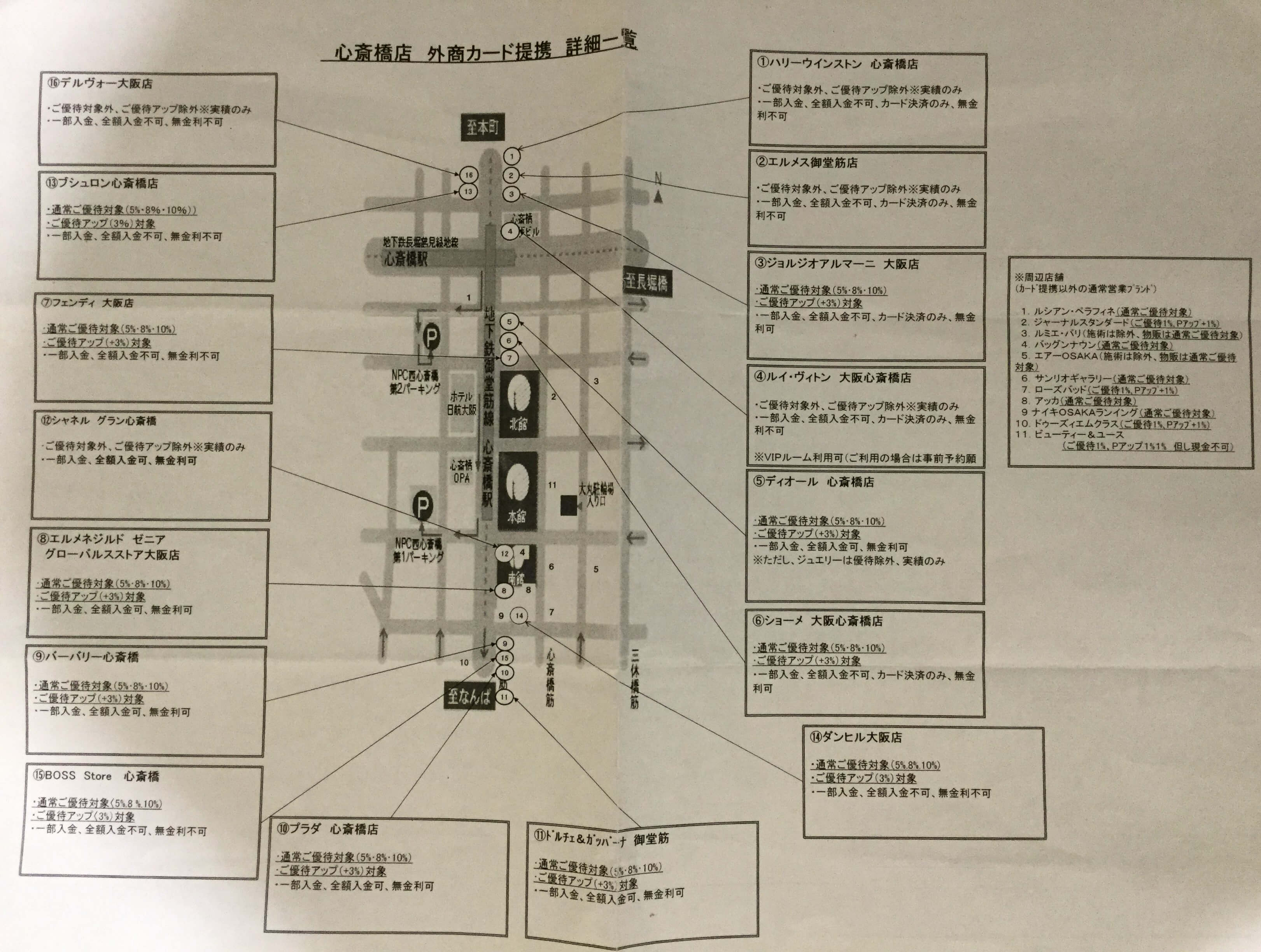 僕は大丸心斎橋店の外商です。大丸心斎橋店は周囲にも高級ブランド店を展開しており、その高級ブランド店が外商の割引対象なのか購入実績になるのか詳細に紹介した以下のような案内が送られてくることがあります。