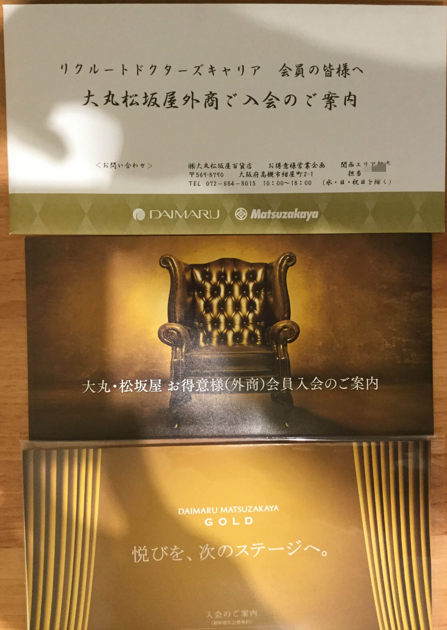 ちなみに医師紹介業者からのDMで「大丸松坂屋お得意様ゴールドカード」入会案内書が送られてきたこともあります。