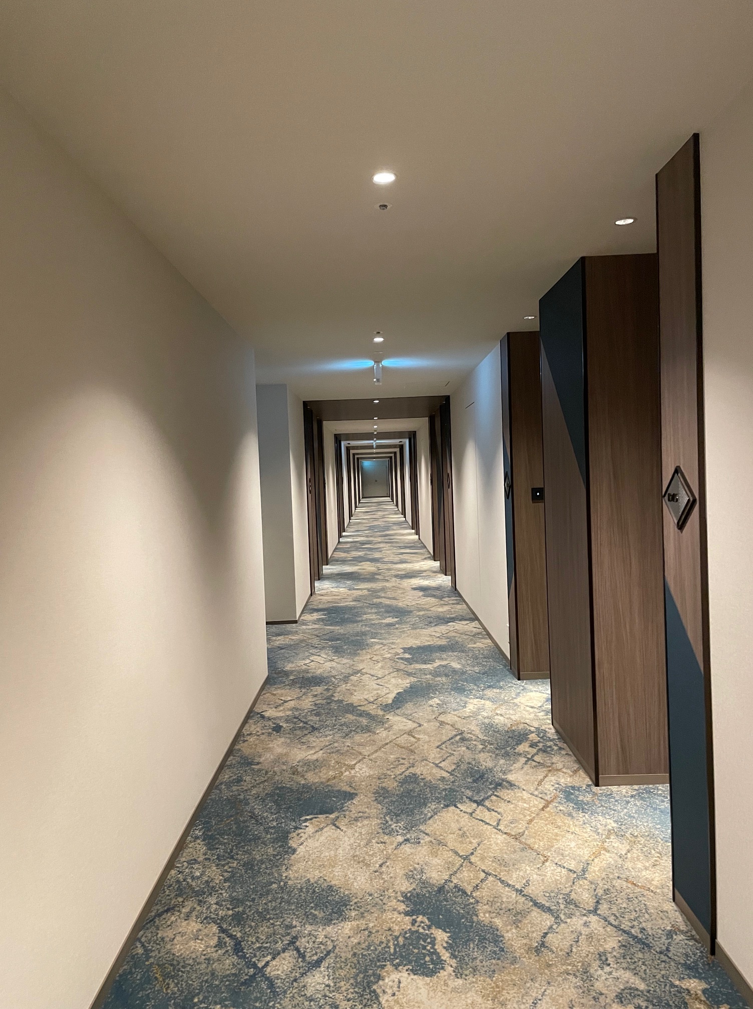 廊下もエレベーターホール同様カーペットの青色が目立ちます