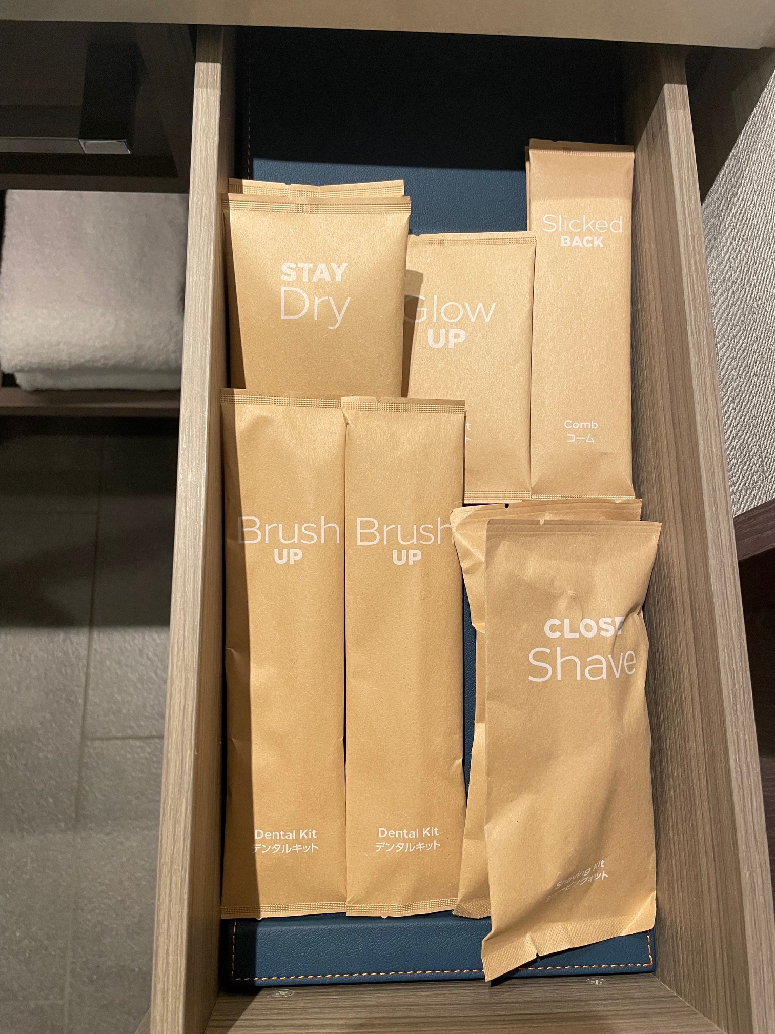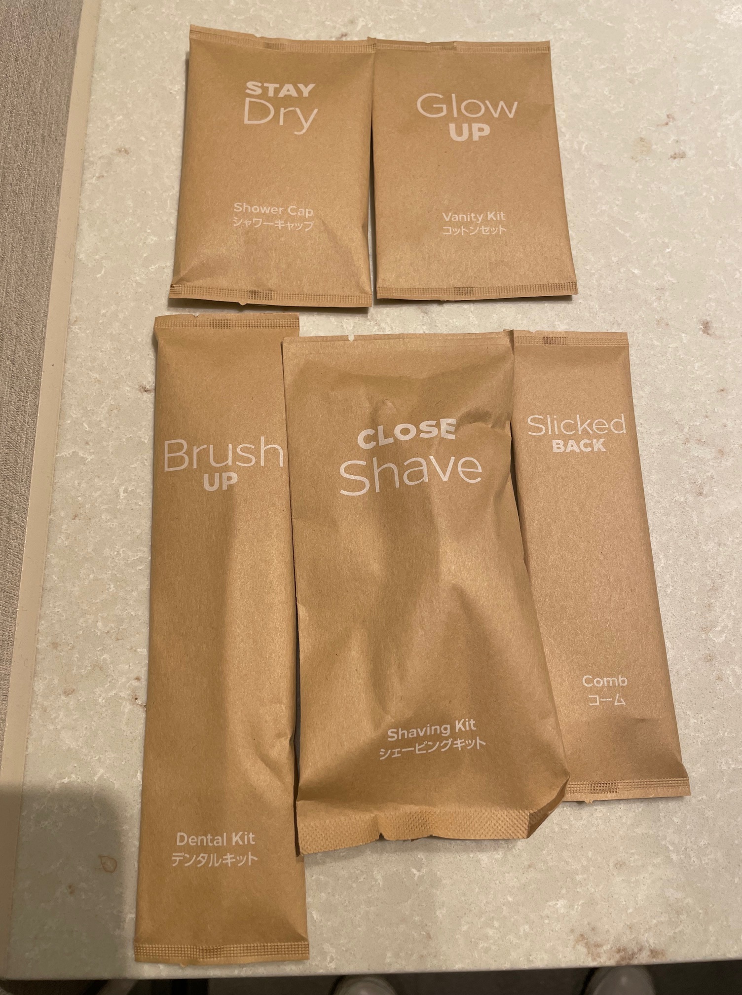 歯ブラシセット、シェービングキット、コーム、シャワーキャップ、コットンセットがそれぞれ2組入っていました