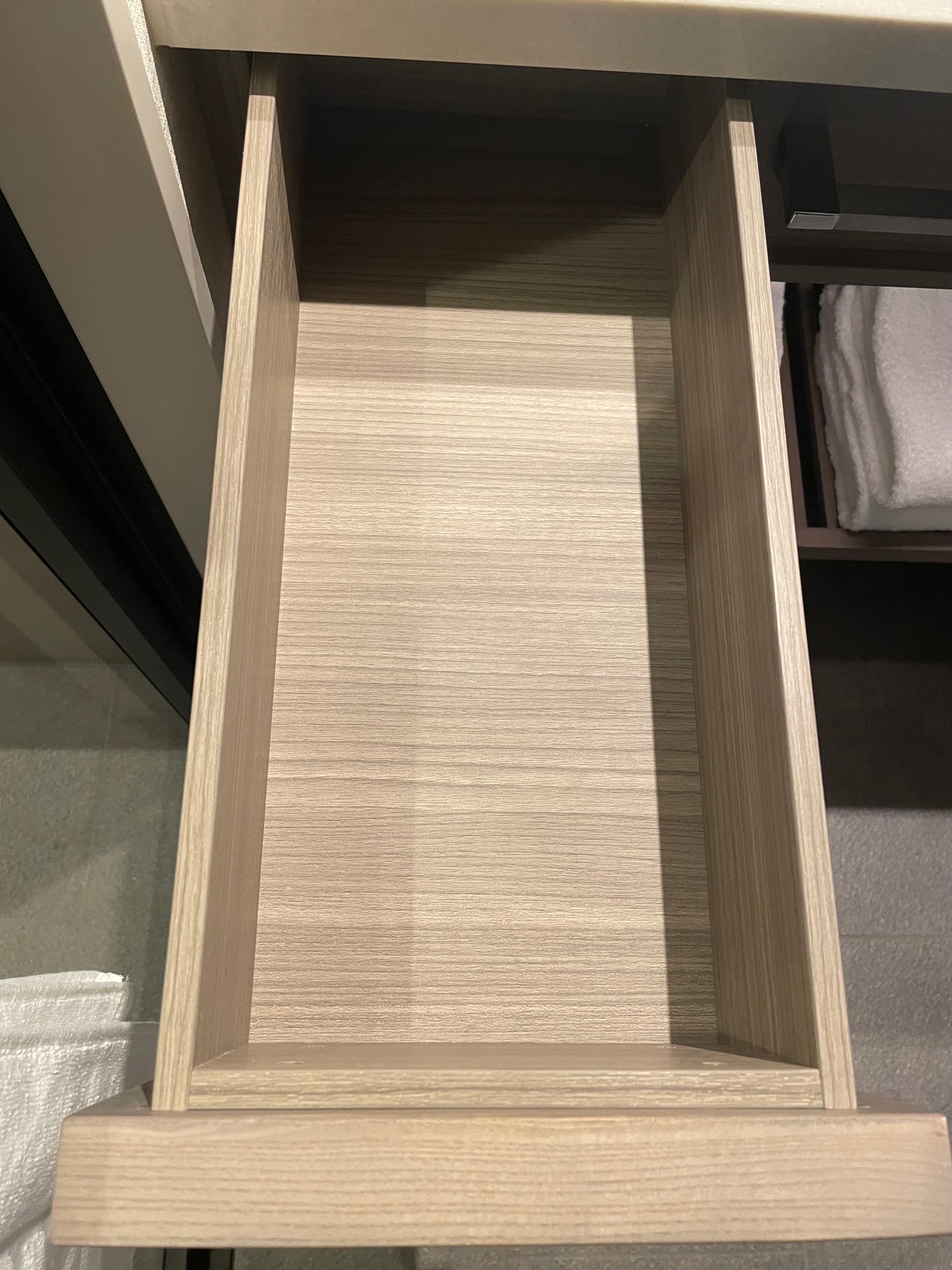 クローゼット左側の引き出しは4段に見えますが、3段で下の1段は2段分の深いものとなっています