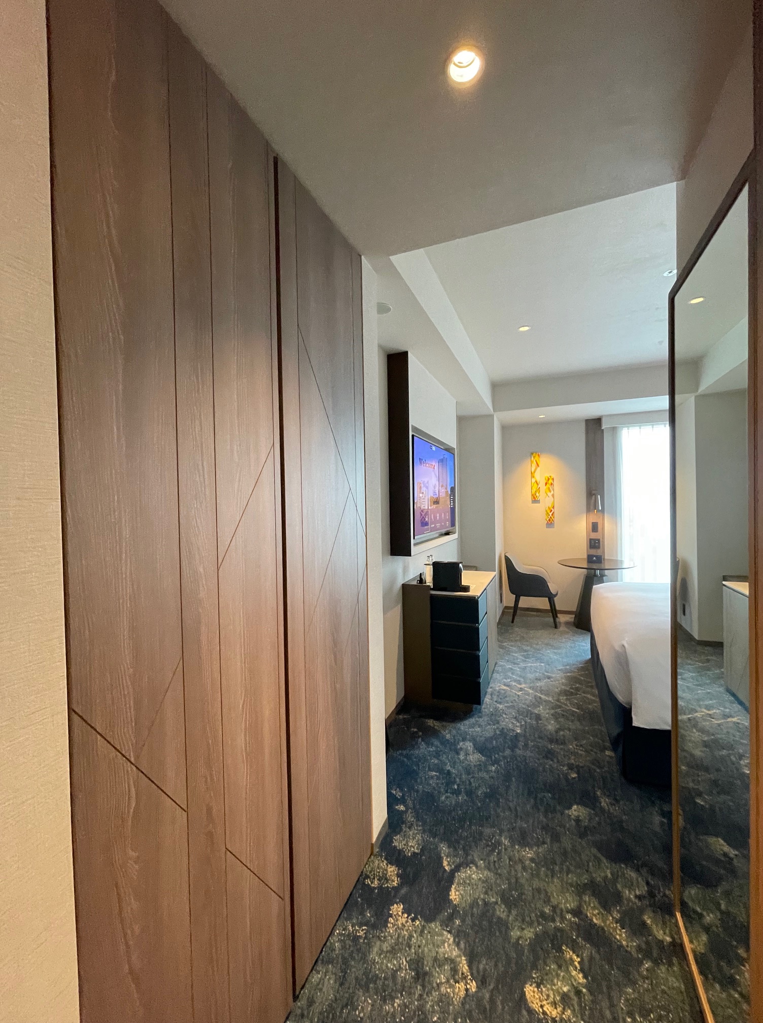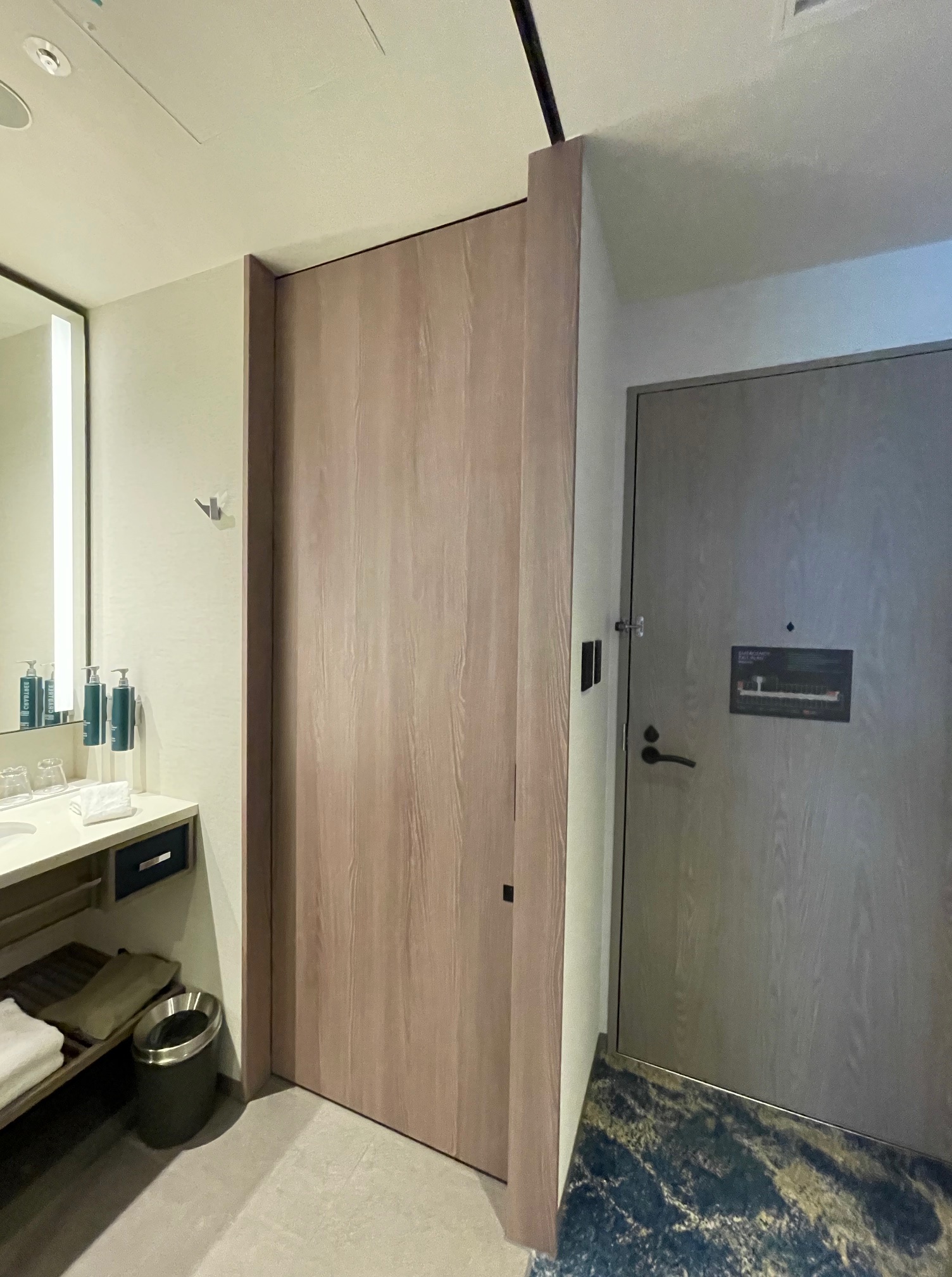 部屋に入ってすぐ左手の扉はクローゼット、右側には大きな鏡があります