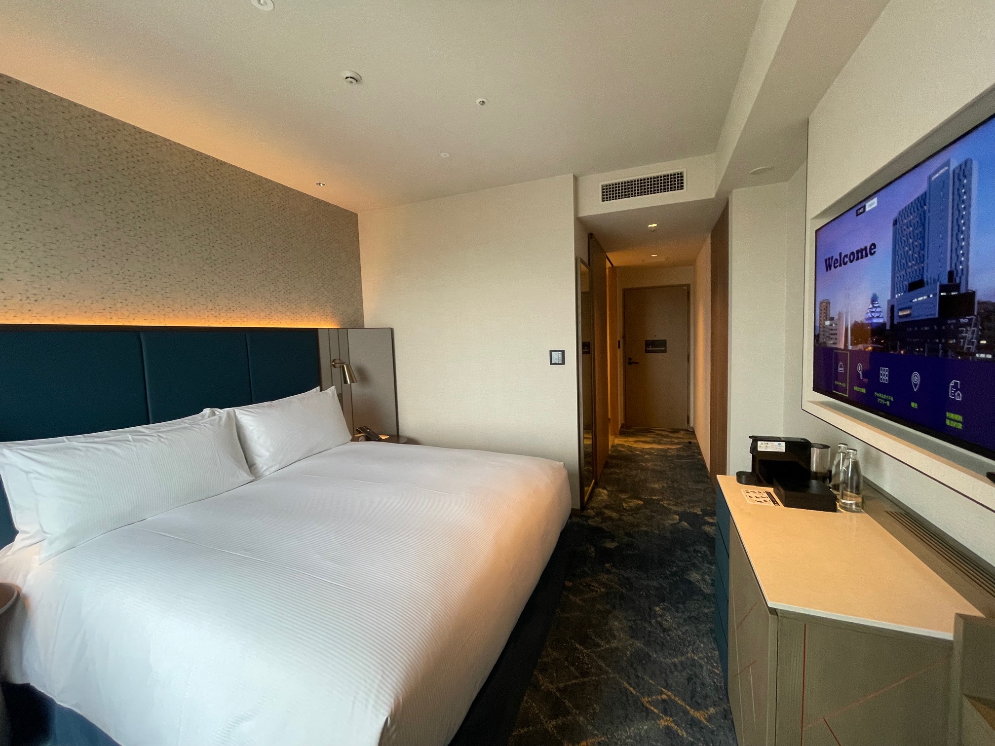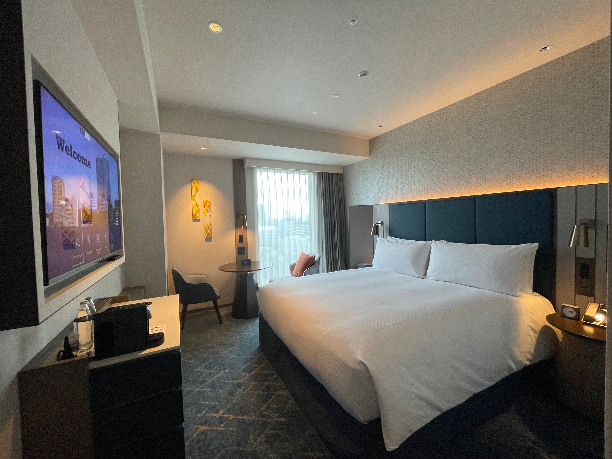 2024年5月1日開業初日にダブルツリーbyヒルトン大阪城キングエグゼクティブルームキャッスルビューに宿泊しました。ダブルツリーbyヒルトン大阪城の概要、客室の種類、アクセス、キングエグゼクティブルームキャッスルビュー室内の様子、共用施設などの様子をご紹介します。ラウンジも充実しており予想以上に良いホテルでした!