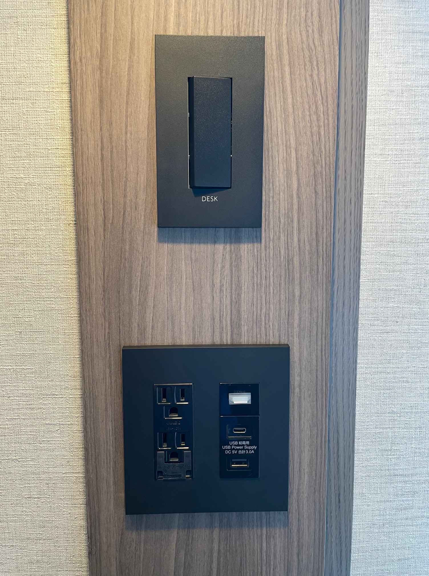 こちらも反対側と同じく照明のスイッチとUSB-Cコンセント×1口、コンセント×1口