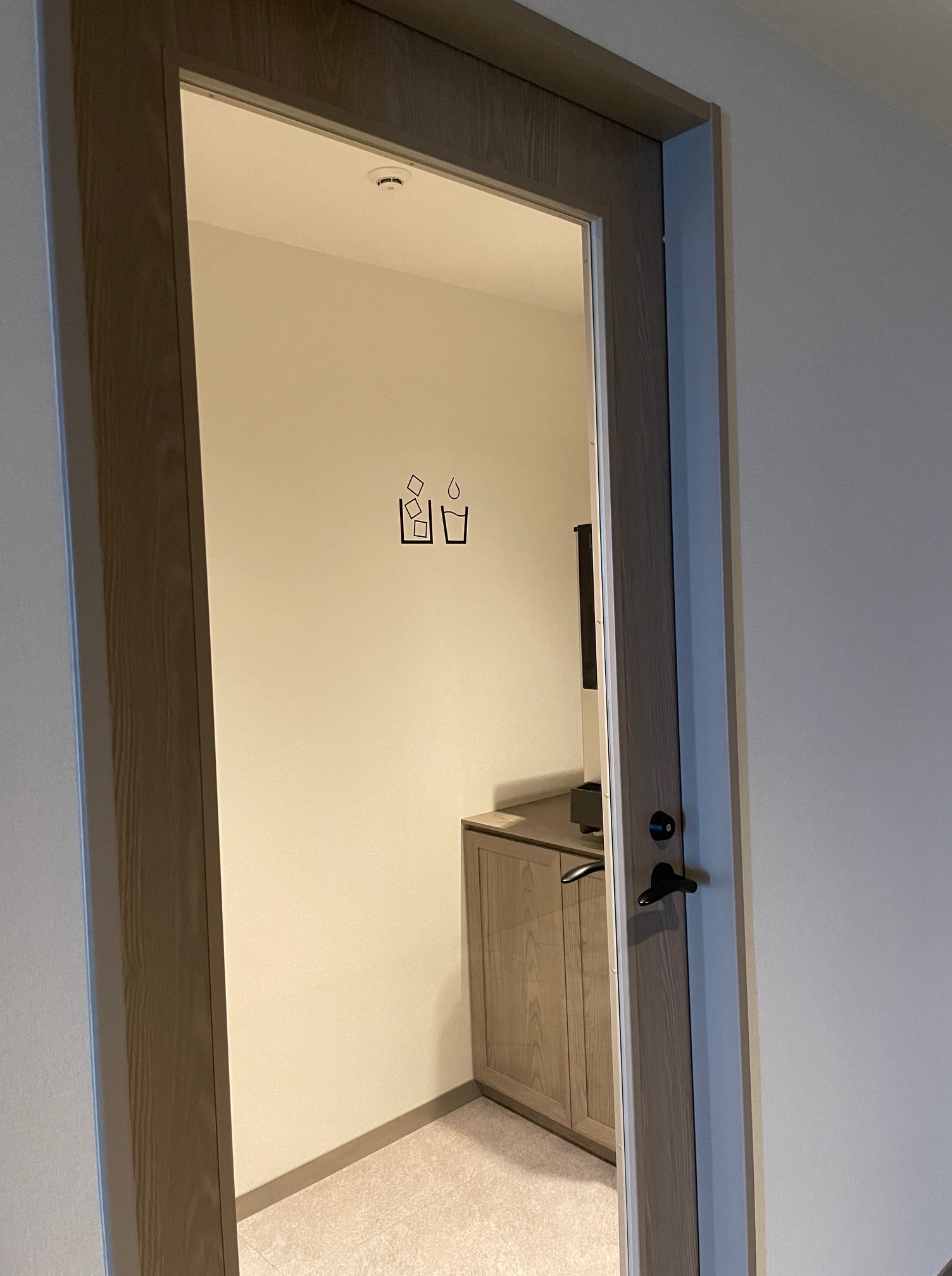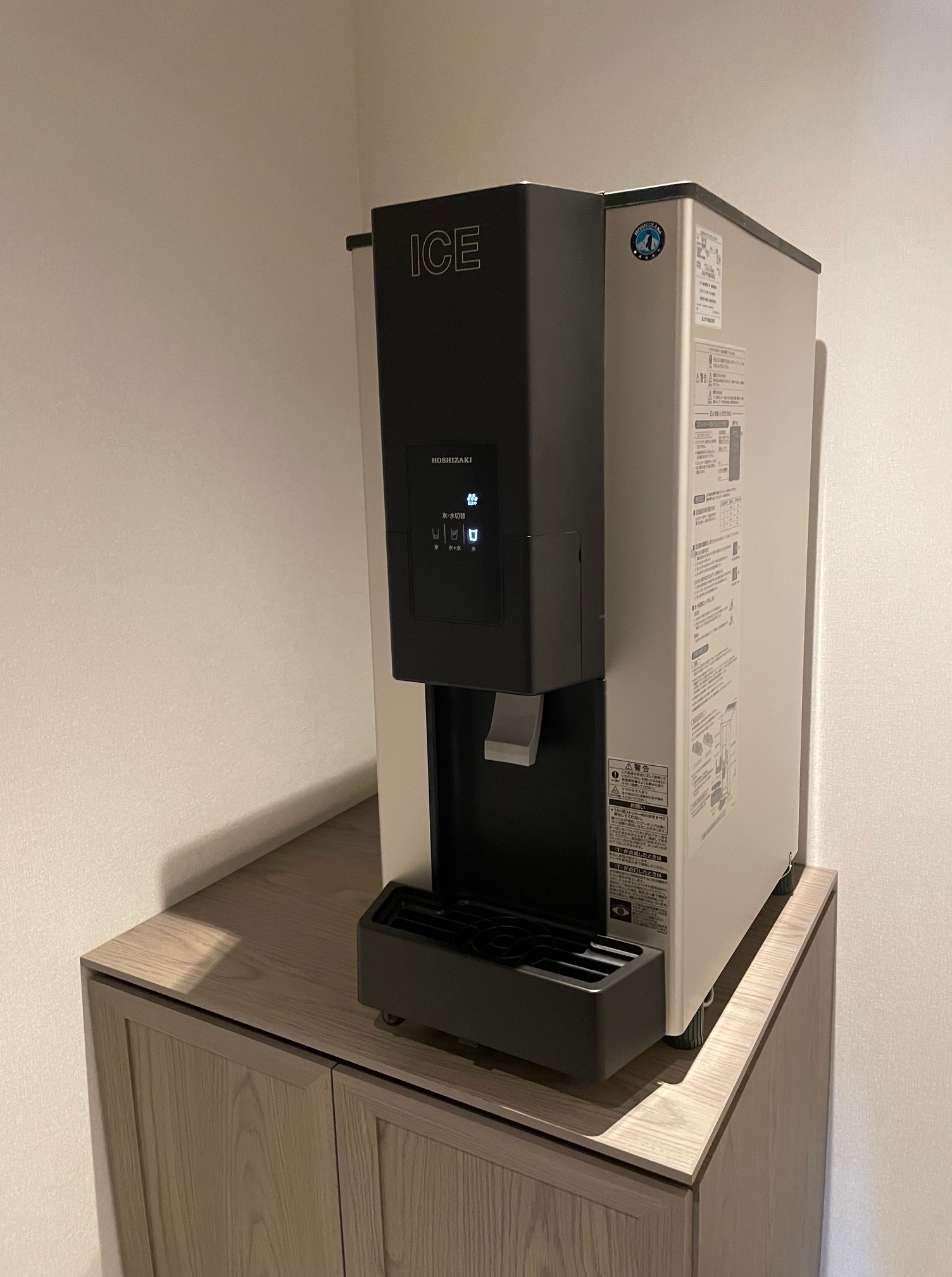 先ほど述べたようにガラス瓶のミネラルウォーターは置かれていましたがこれはひょっとしたら会員特典?ホテルの案内にはペットボトルの水は部屋には置いていないので各フロアのエレベーターホールのウォーターサーバーと製氷機があるのでピッチャー?カラフェ?とアイスペールを利用してくださいと書かれています