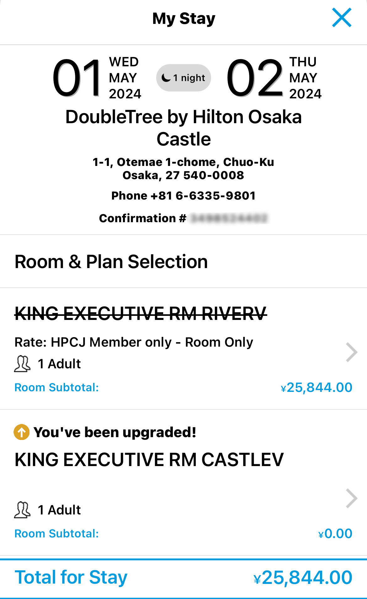 UGなしでいいからキャッスルビューにして欲しいと電話しようかと悩んでいる間にキングエグゼクティブルームキャッスルビューにさらにUGされていました!