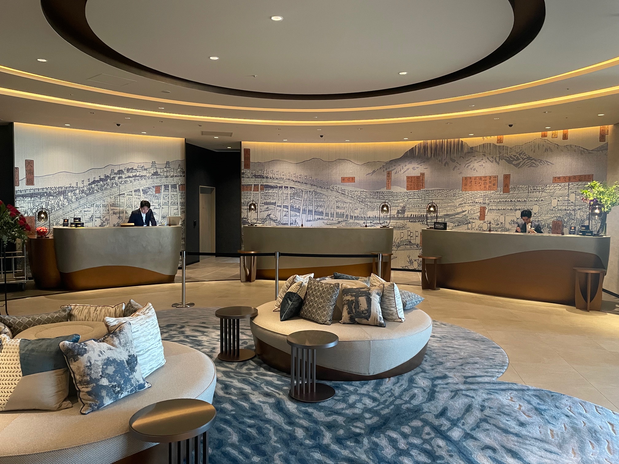 ロビーエリアは、海運業で栄えたこの土地ならではの風景や人々をモチーフにし、昔大阪と江戸を繋いだ商船「菱垣廻船(ひがきかいせん)」や「港」をイメージし、波を模したカーペットで趣のある空間を演出しているそうです。