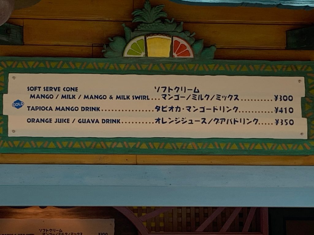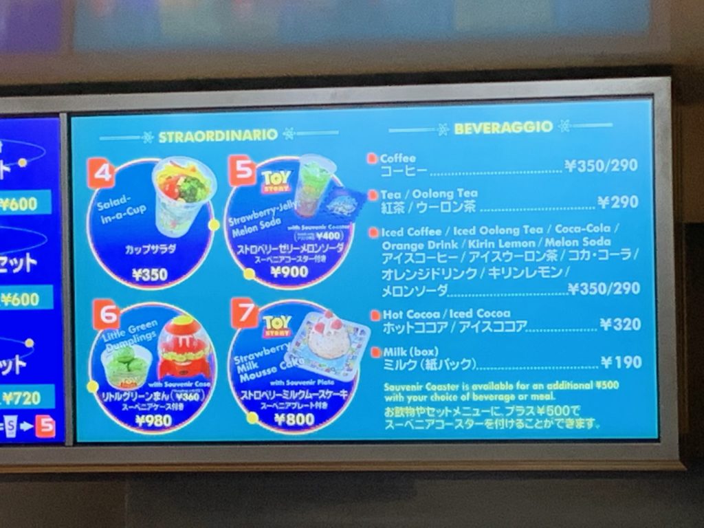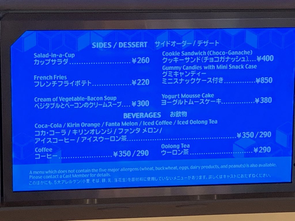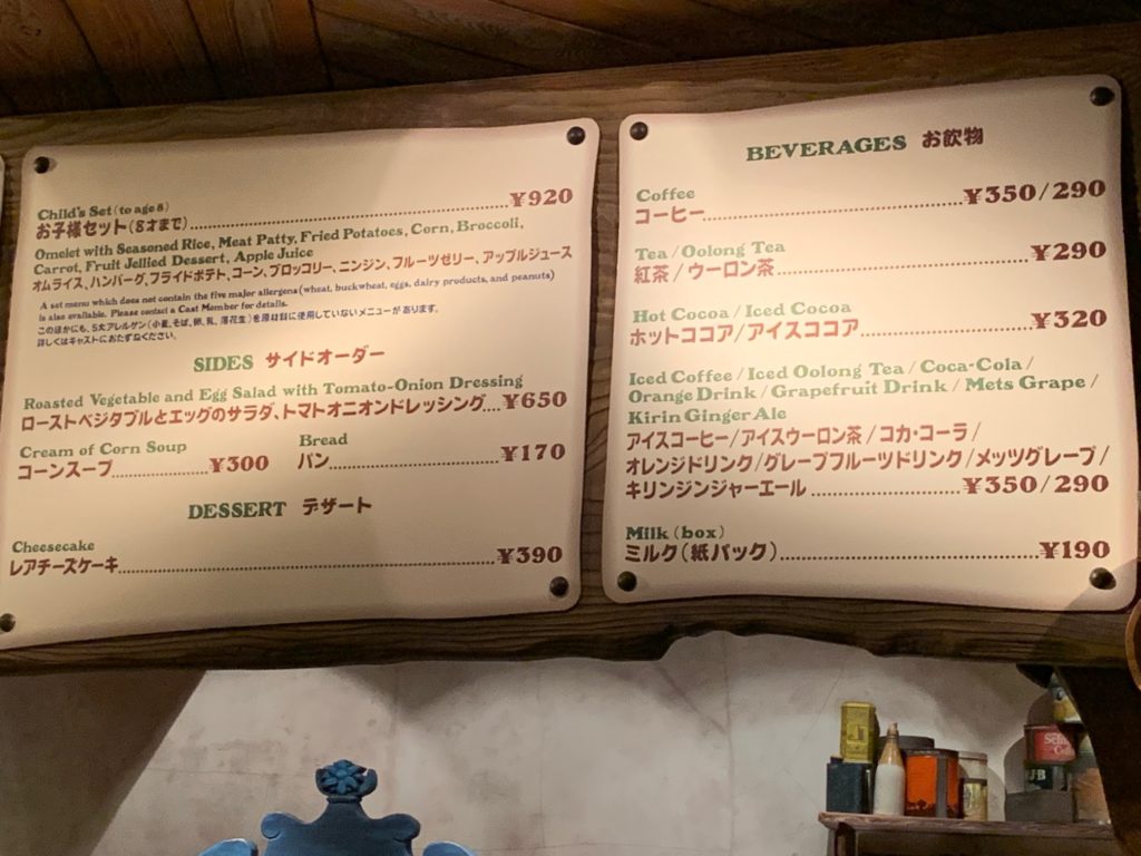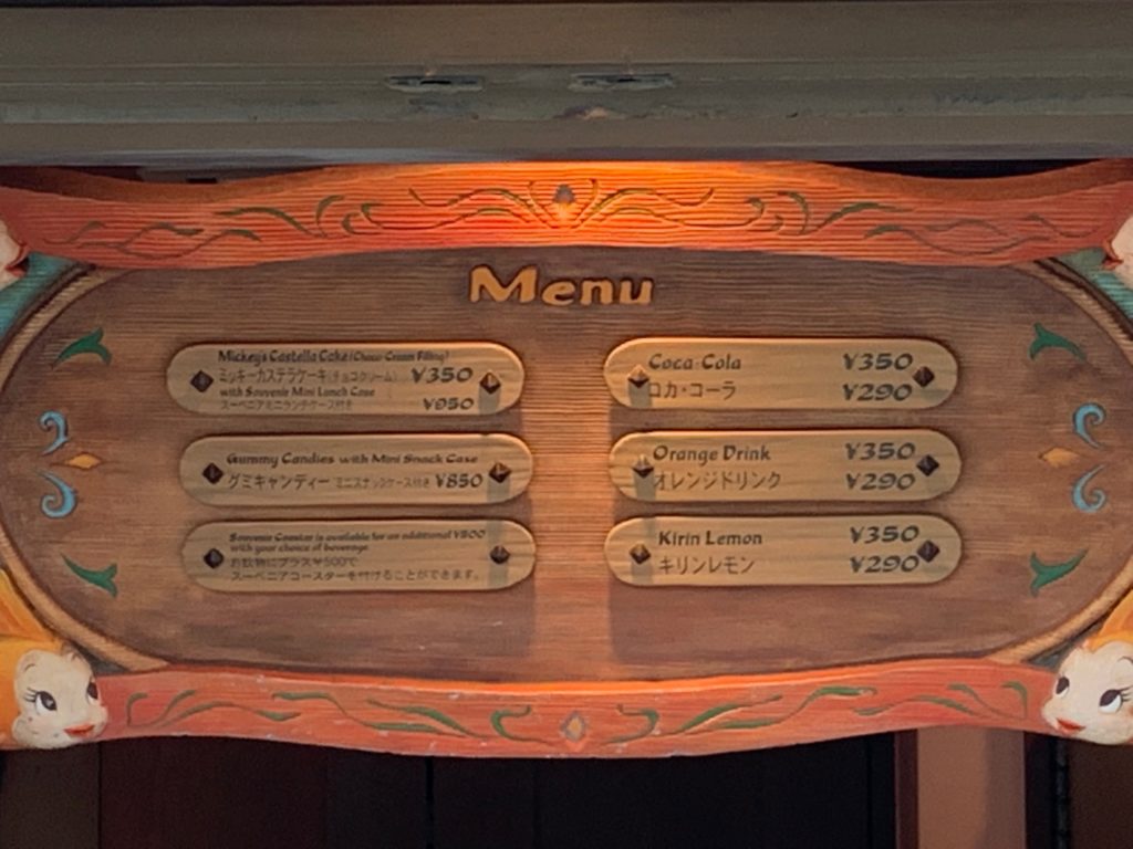 で12種類のドリンクがあります。何を飲むか困った時はこちらに行けばいいかもしれませんね(笑)ただグランマ・サラのキッチンはスプラッシュマウンテンがあるクリッターカントリーの入り口にあり、ディズニーランドのエントランスから遠いのが難点です…
