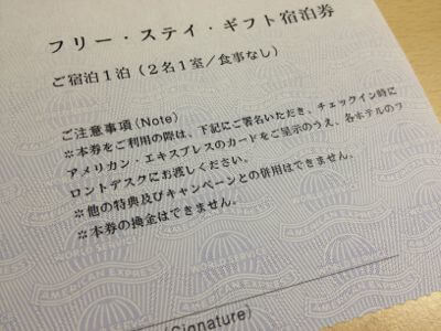 アメックスプラチナカードの特典の一つにフリーステイギフトというものがあります。